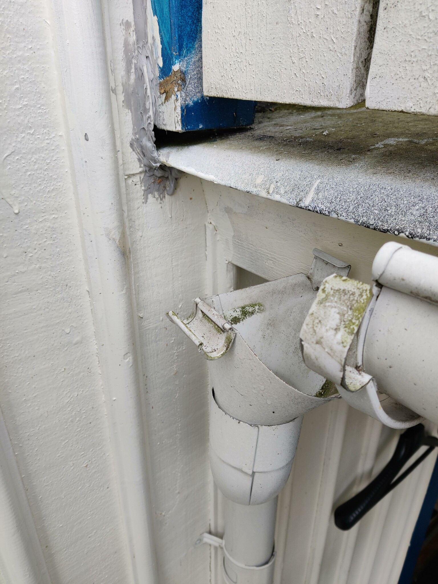 Första stället är där regeln till staketet sitter vid väggen, var en stor glipa där jag lagt fogsträngen, vattnet tog sig in mellan plåt och fasadbräda där innan.