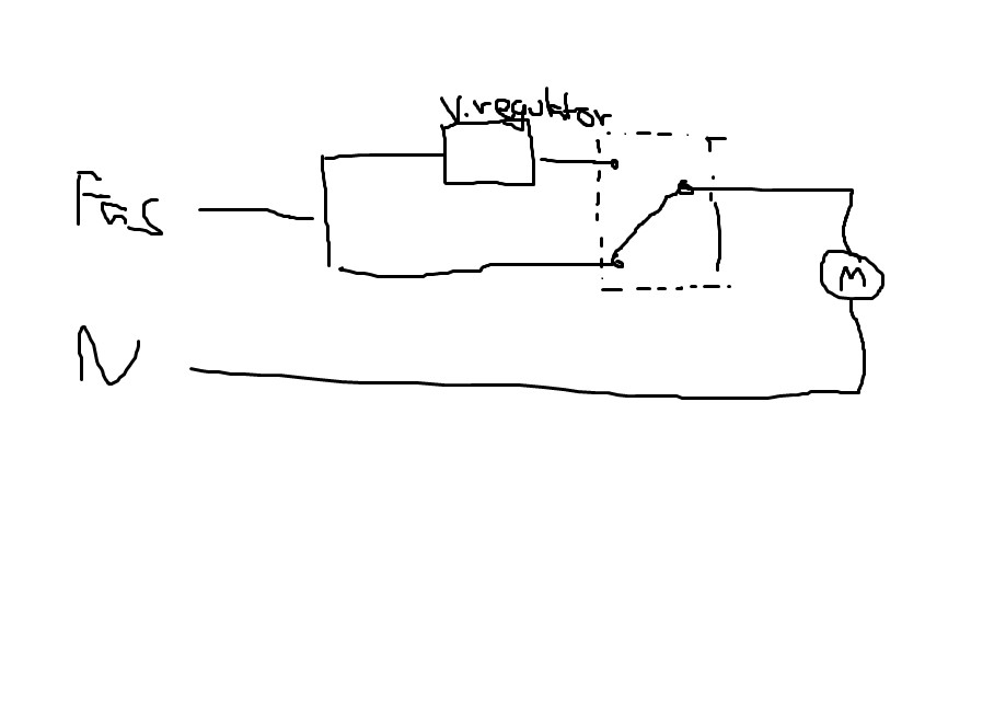 Jag har kopplat in en varvtalsregulator, fuktsensorn kopplar om så att fläkten får ström antingen direkt (fullfart) eller via varvtalsregulatorn, i normalfallet.
