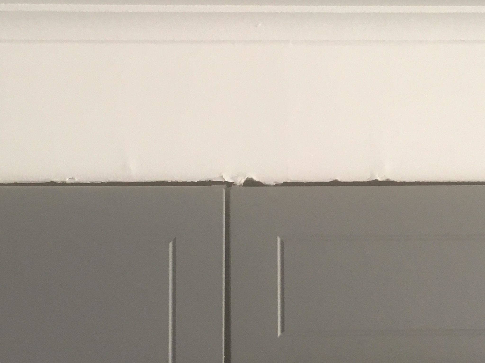 Hejsan, det blev en ful taggig springa ovanför de nya köksluckorna efter en upprustning av köket. Se bild. Springan är ca 1,80 m lång . Skåpen med nya luckorna ligger i en nisch. Någon som har förslag på hur springan kan täckas för så att det ser snyggt ut igen?