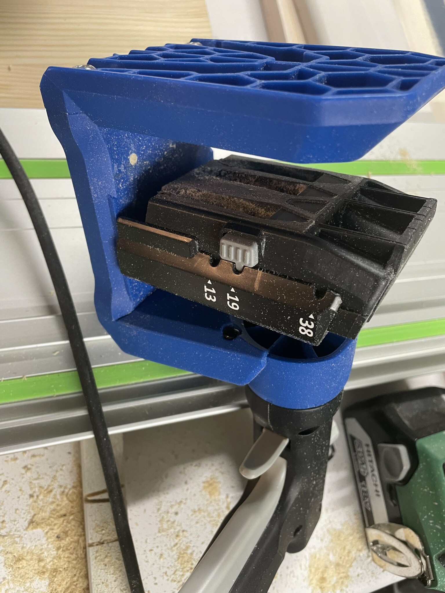 Jag har en från wolfcraft och hade samma problem, men genom att dra borret ut och in några gånger så tycker jag att försvinner ganska bra så länge hålen är längs med träets fiber. Att göra det tvärs över fiberriktningen ger fortfarande lite problem. Sen blir det flisor så brukar det vara enkelt att ta bort med ett stämjärn