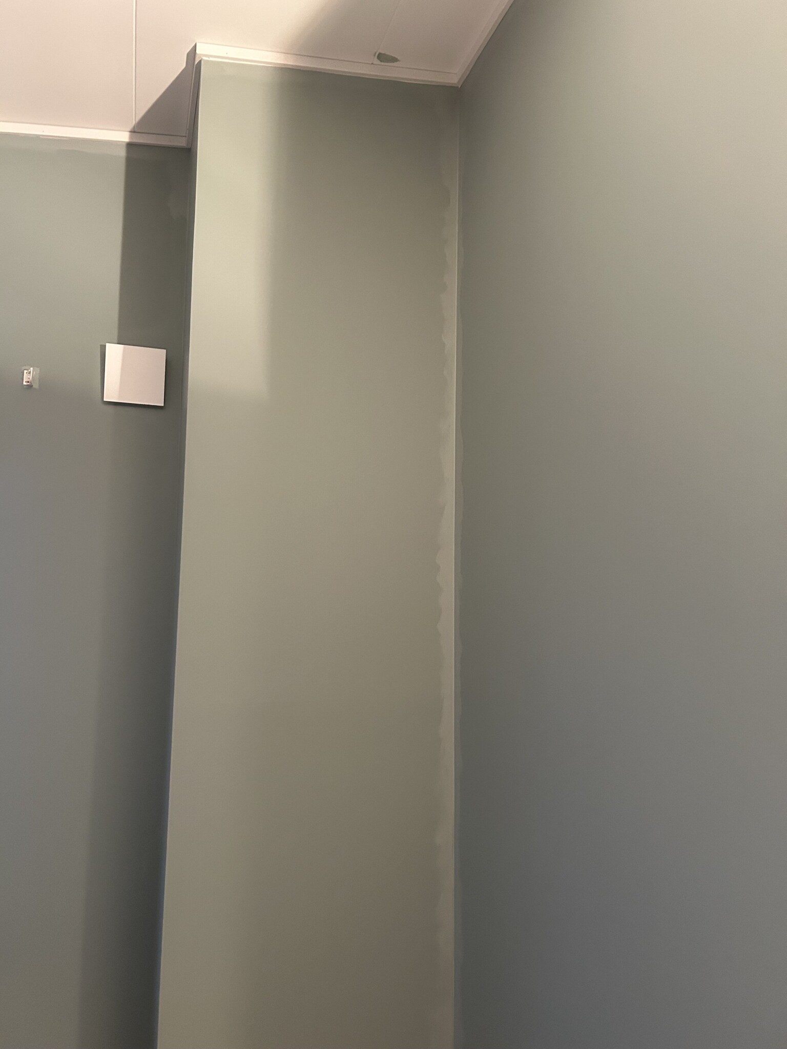 Har målat två lager med roller samt pensel i hörn samt listerna samt runt eluttag men där jag målat med penseln har färgen blivit mycket ljusare! 🤯 vad har jag gjort för fel? Hur kan jag rädda det? Fotat 12 h efter målning så allt är torrt