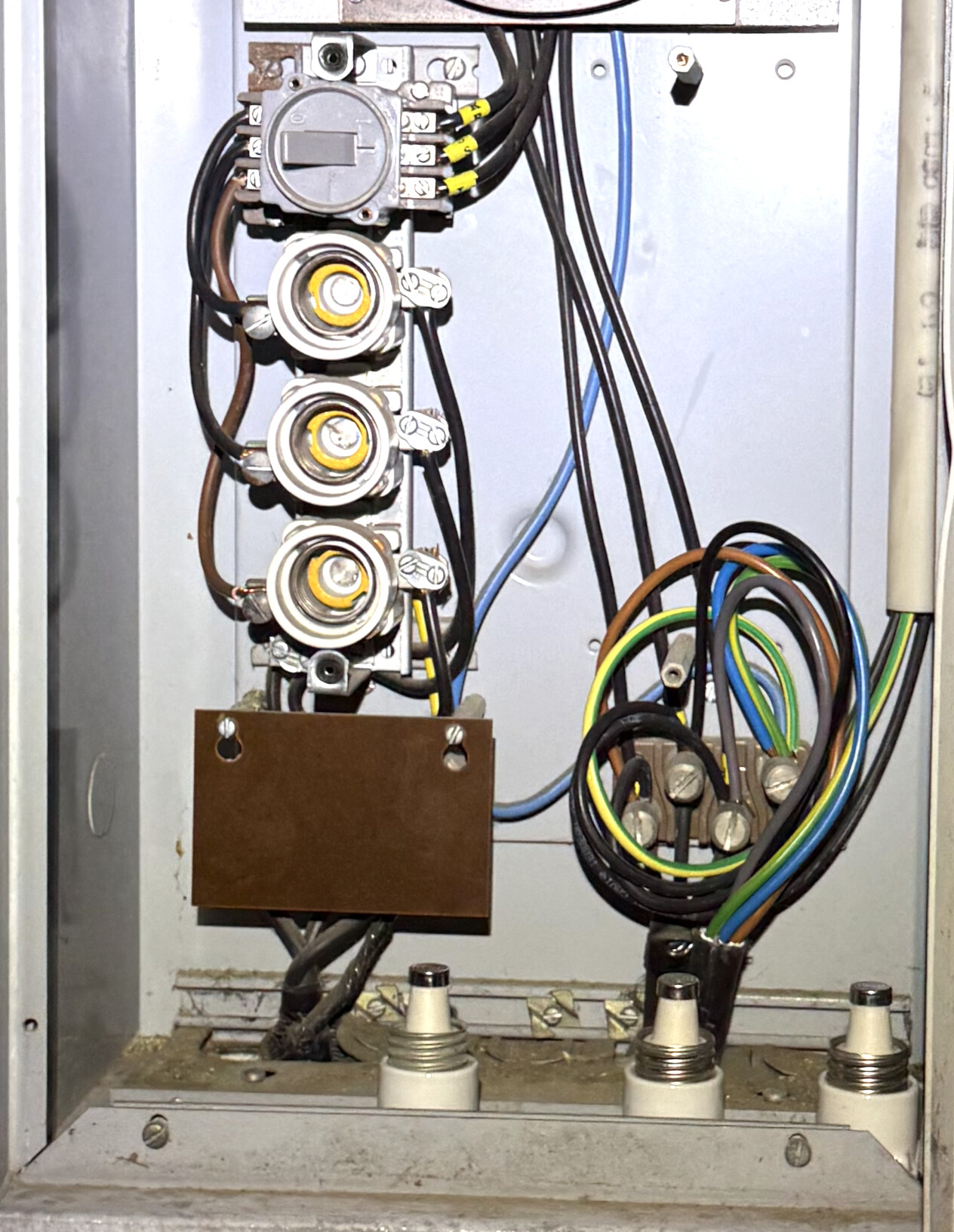 Yes har original täckplåt kvar med plats för 3x diazedsäkringar.