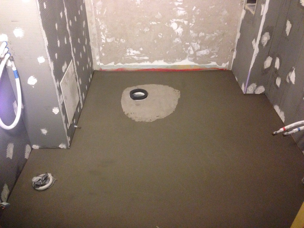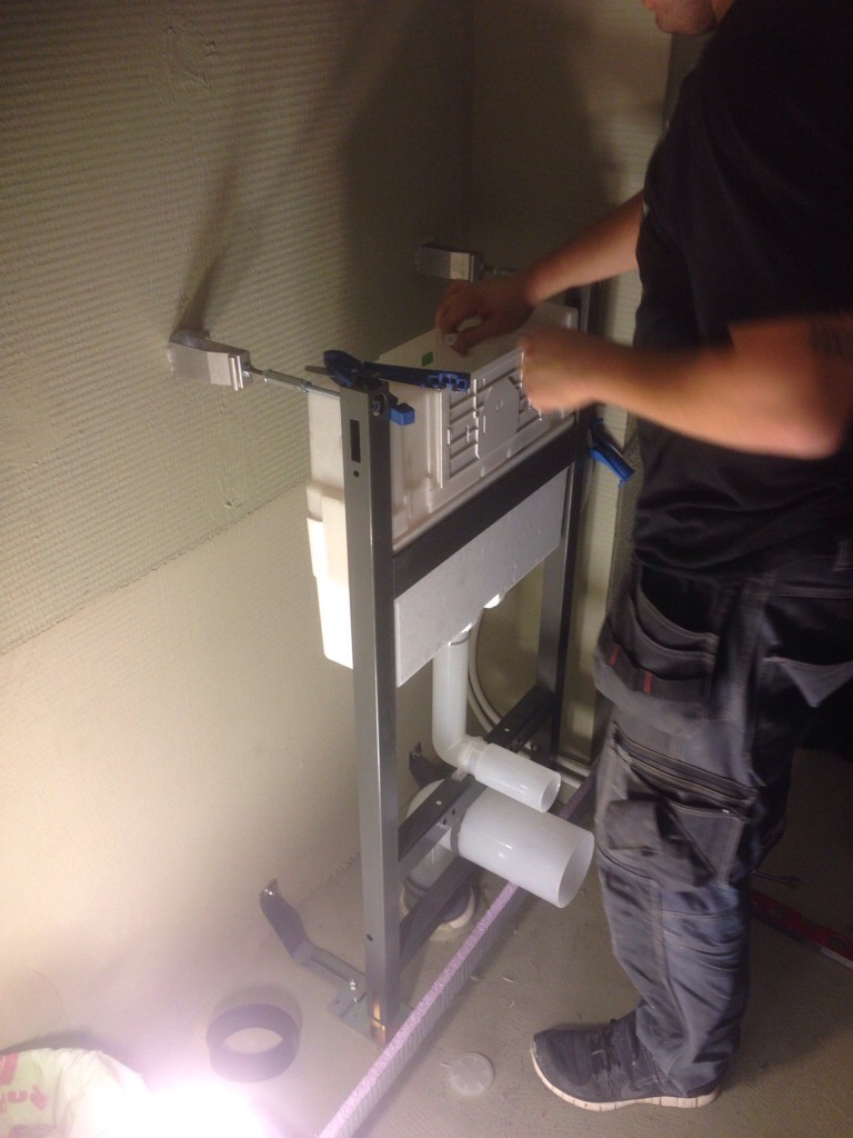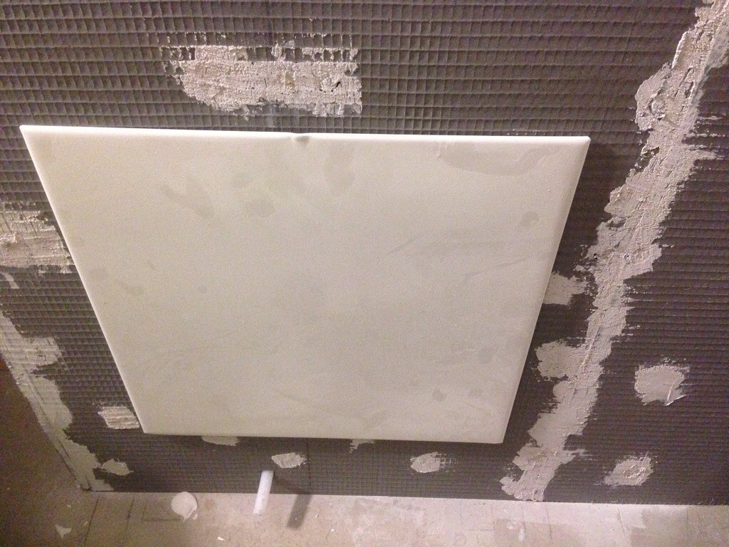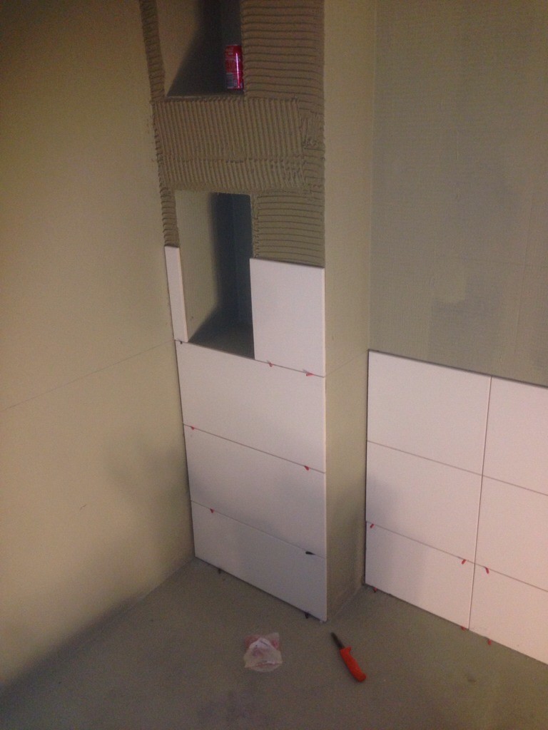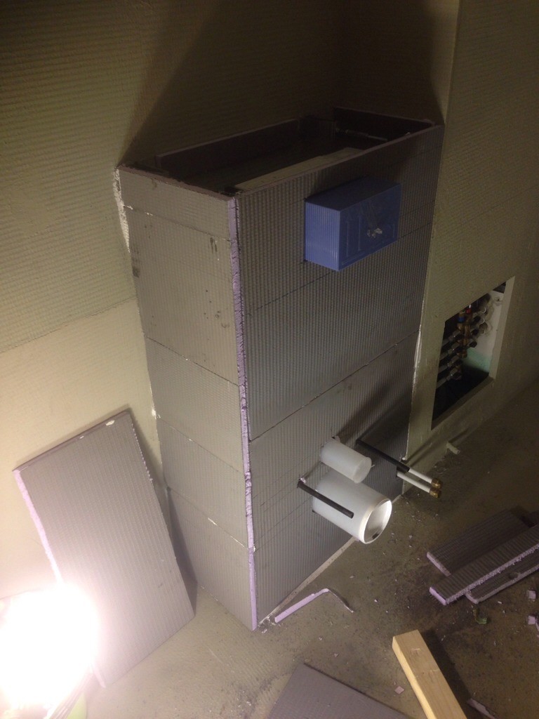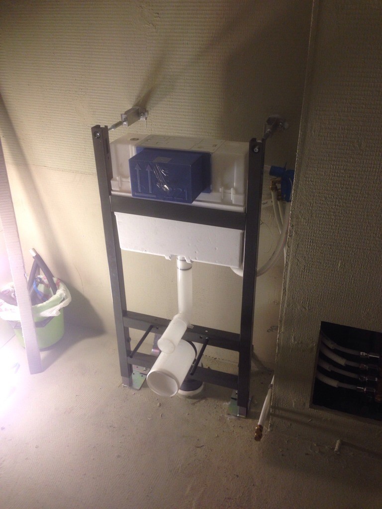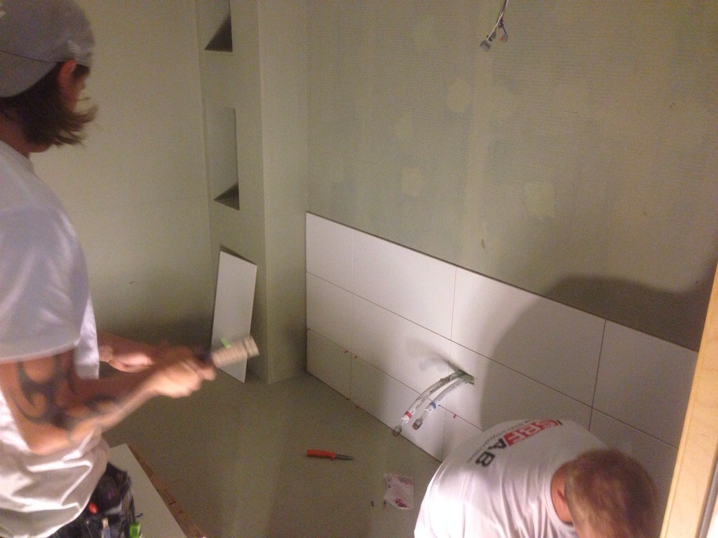 Grabbarna fick ge upp mitt i igår kväll, insåg att toafixturen måste upp först för att plattorna ska läggas snyggast möjligt.
