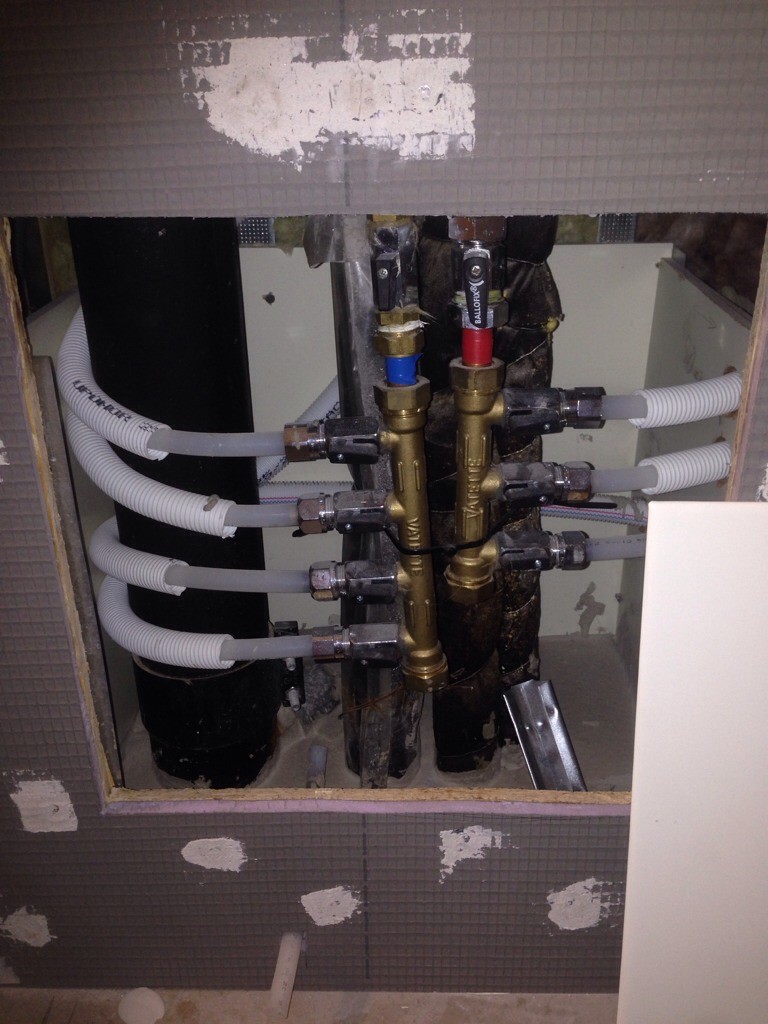 Plattsättaren var inte nöjd att ha den i badkarsväggen, våtzon 1. Han ville ha den ifrån köket, rörmockaren vägrade och sa att man måste kunna komma åt den och jobba, utan att gräva in hela armen i mörkret och gissa vad man gör, efter att man demonterat ugnen på andra sidan.