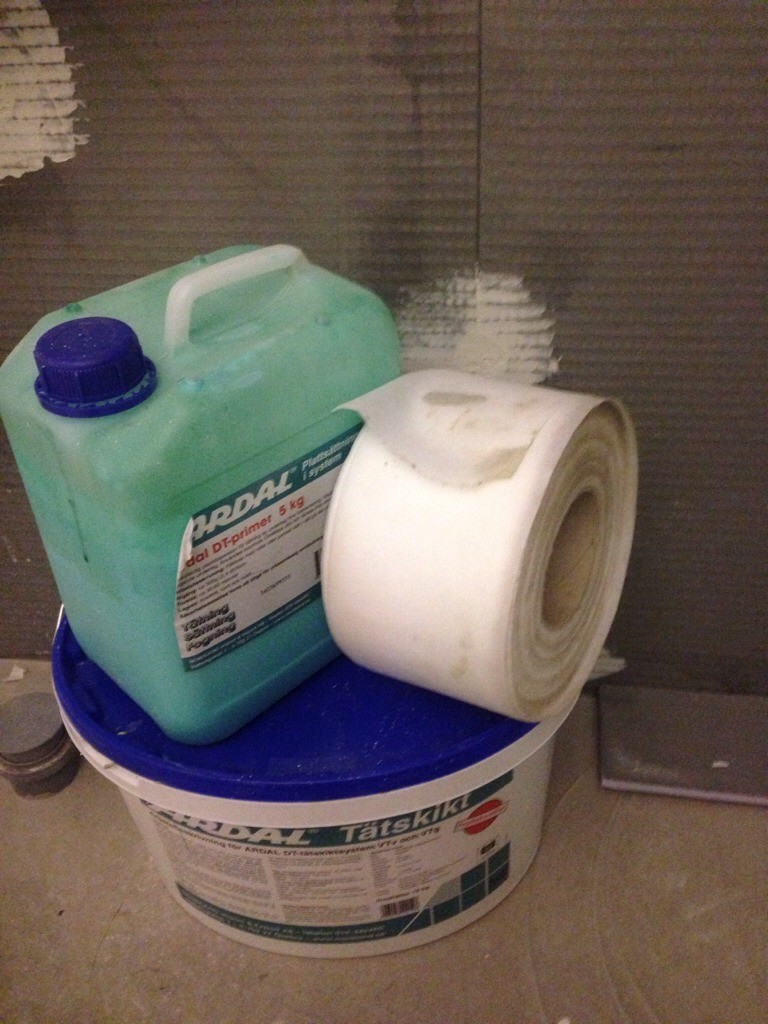Så. Sätta remsor runt badrummet.. då har man gjort det också för första gången