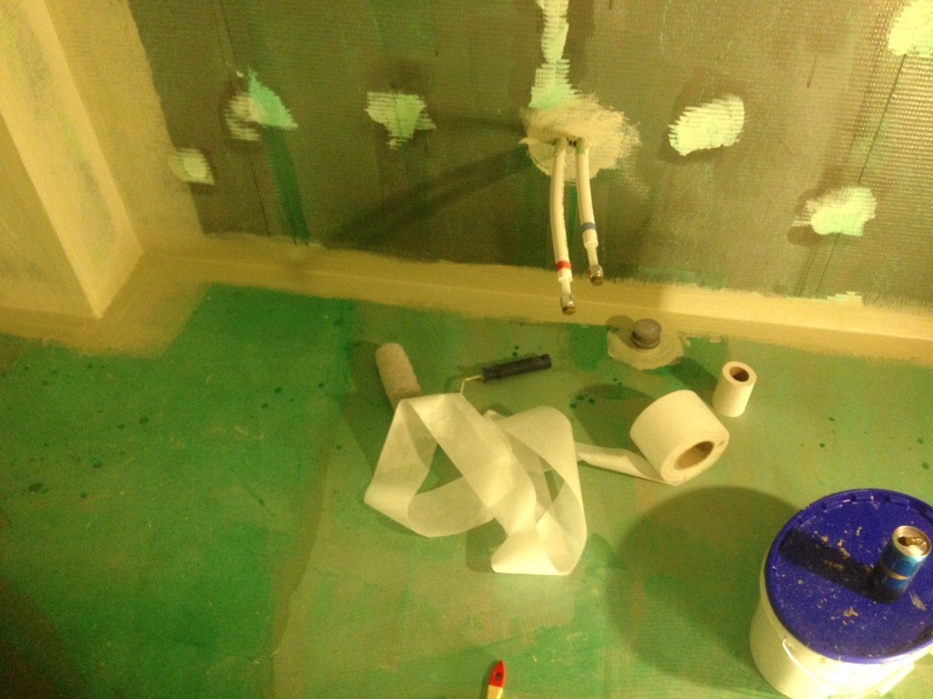Efter ett par dagars torkning var det dags att prima hela badrummet.