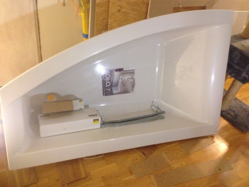 Tror inte jag lagt upp bild på badkaret. Det tog alldeles för många timmar, av sambons tid, att hitta ett asymmetriskt badkar, som inte kostade 16.000:-, och var rätt mått. Blev ifrån Polen och hit med transferbuss á 500 kr.