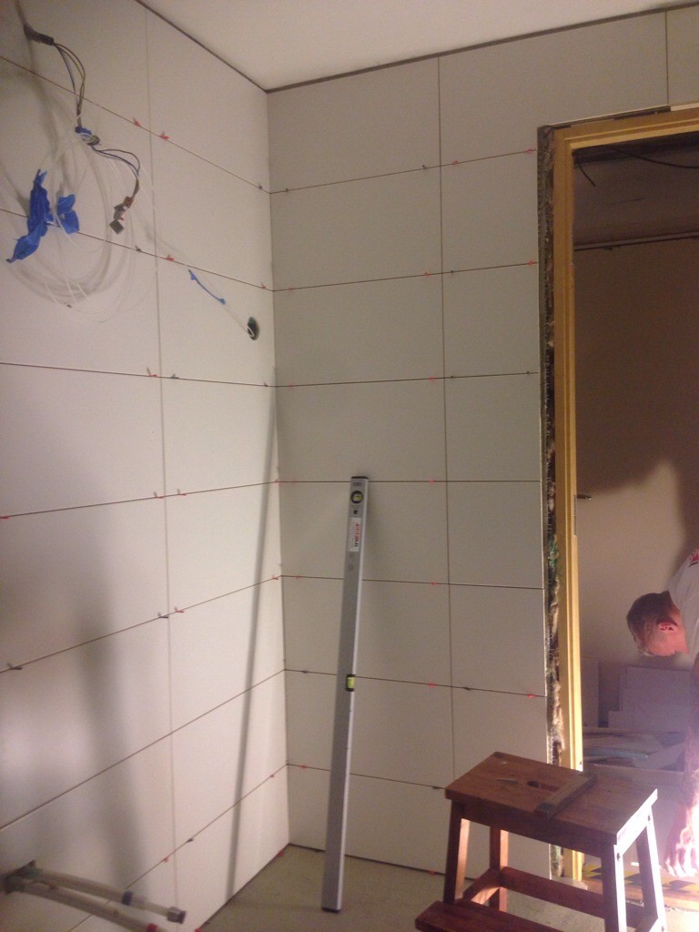 Vi hade tänkt oss förbandsläggning av plattorna, båda grabbarna stod på sig och övertalade oss att inte göra det. I efterhand är vi nöjda. Hade sett rörigt ut.