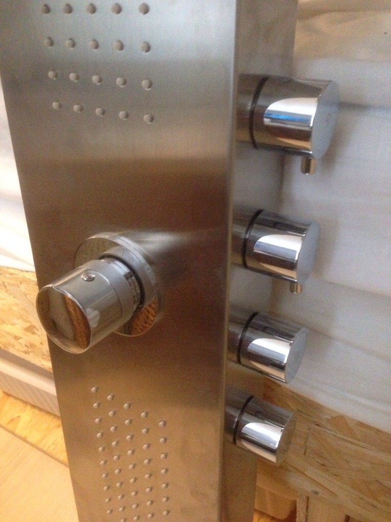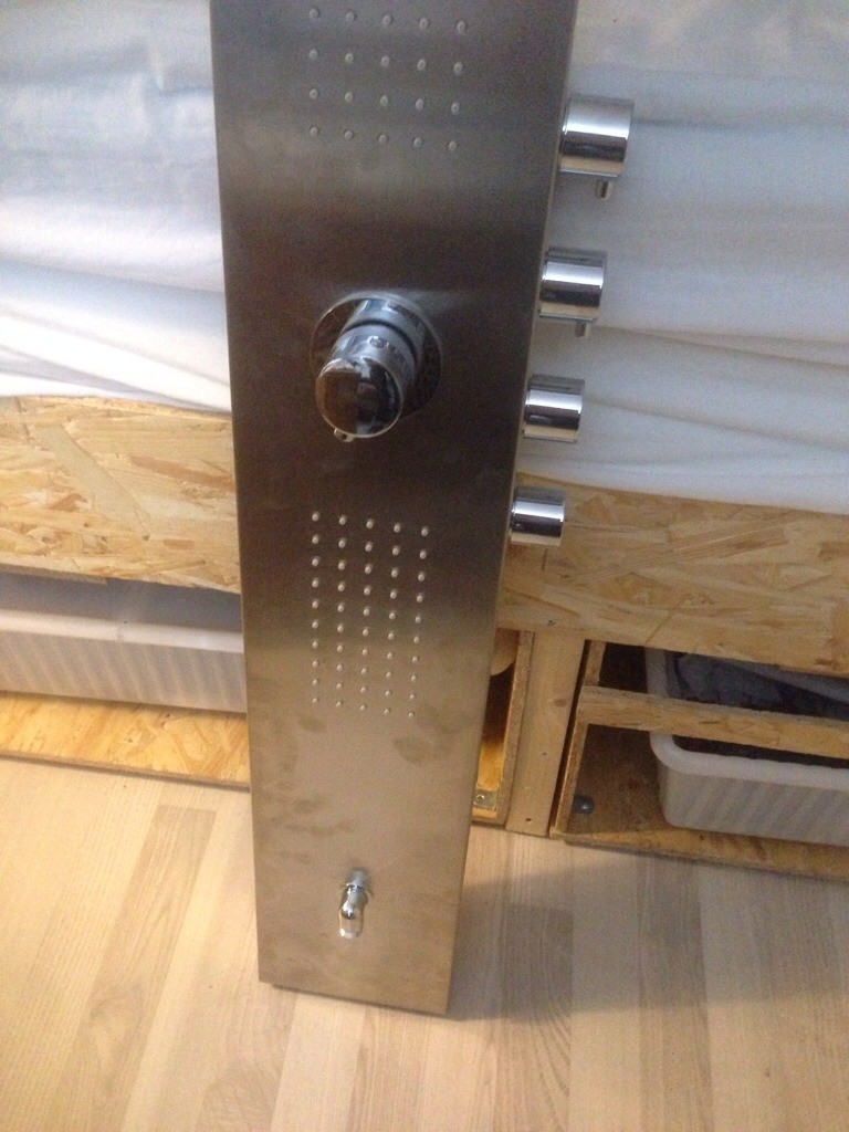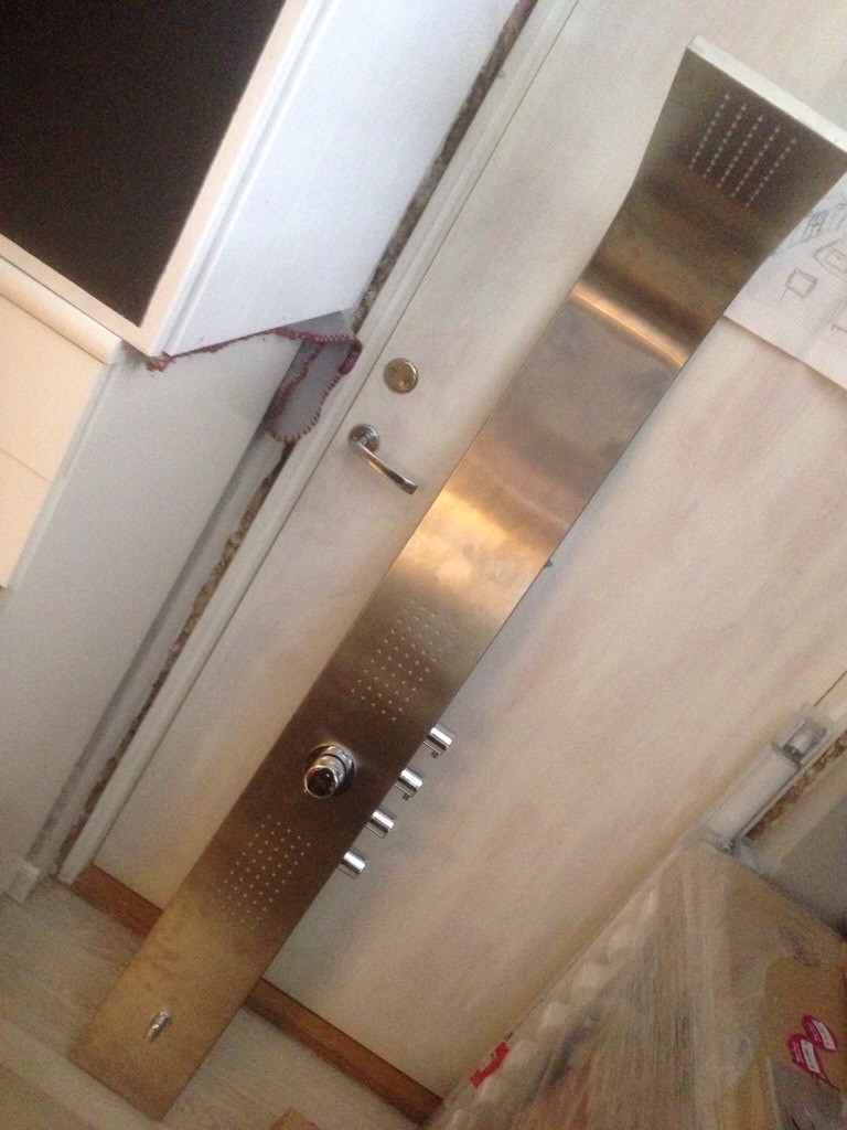 Duschpanelen ska byggas om så att den kommer styra kranen i badkaret för att slippa ha flera kranar. Tyvärr har ju såklart tillverkaren försvunnit från jordens yta, så det blir till att lösa det. Ledsen för sista snea bilden, iphonen var inte tillräckligt vidvinklig.
