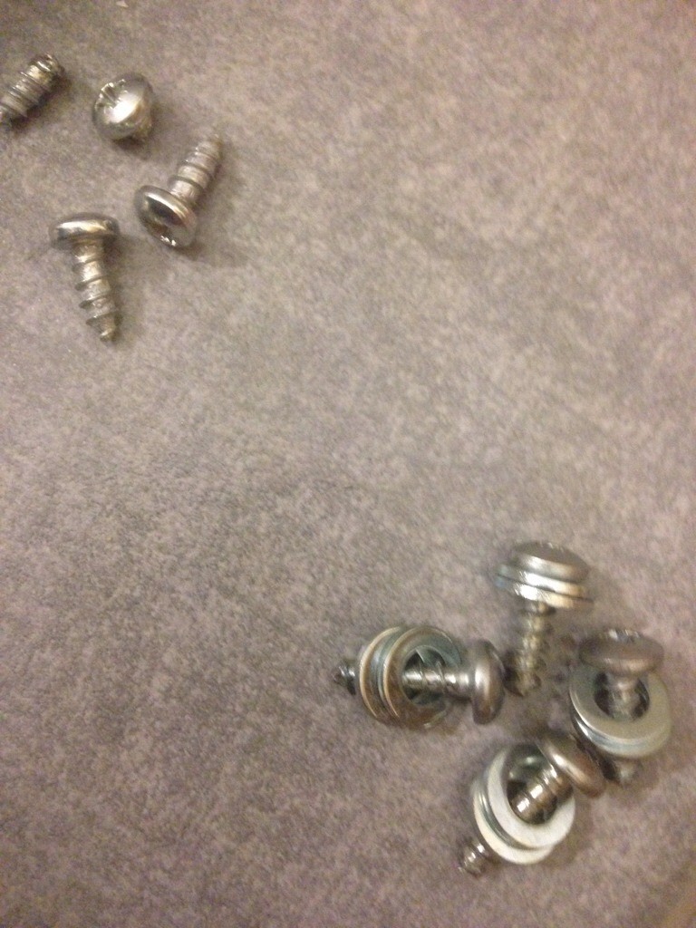 Blev att knipsa bästa skruven jag hittade och slänga på två små brickor så blev längden rätt.