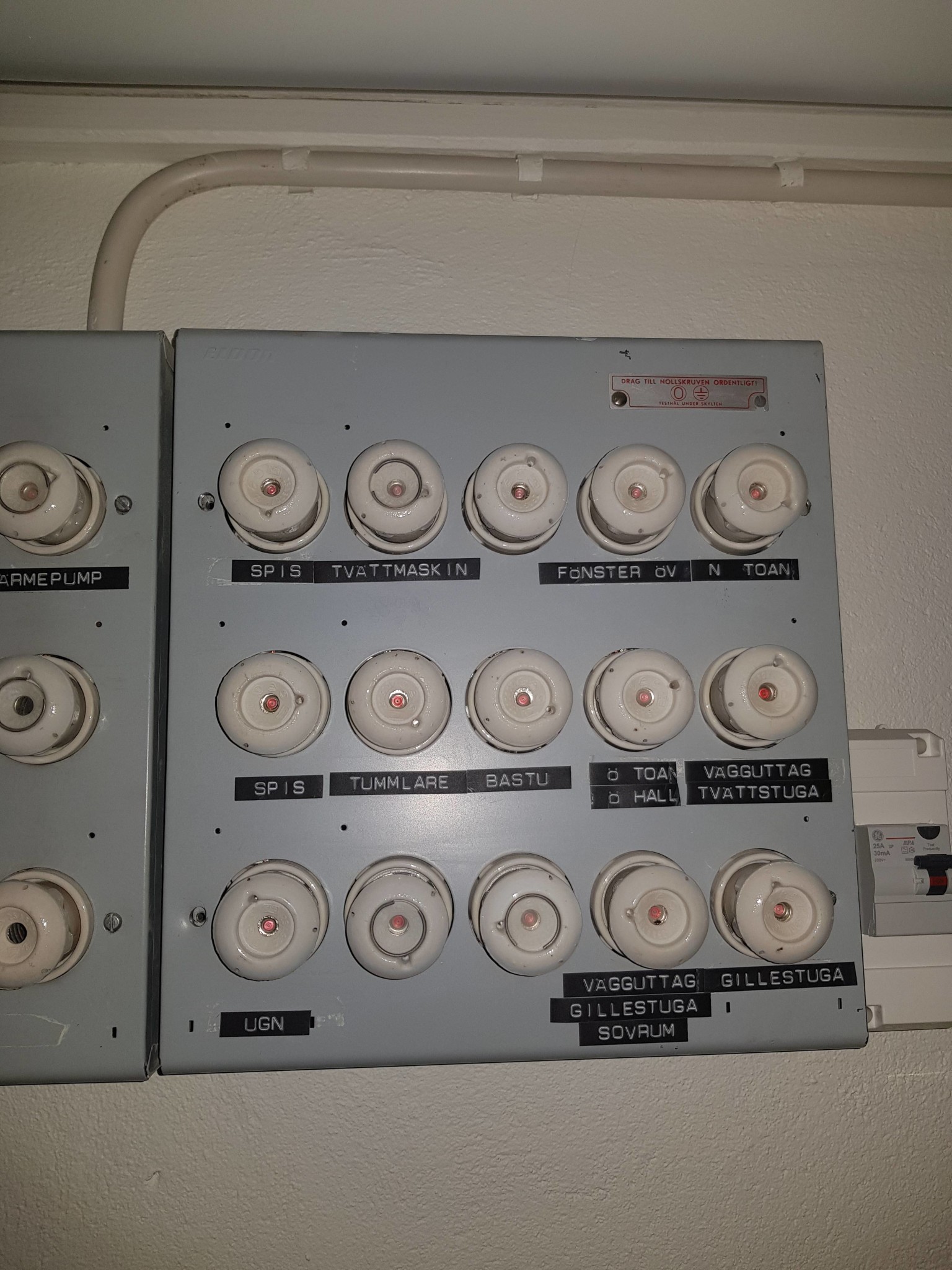 Det kan vara någon som har använt en säkring i gruppen för ugn. I så fall ligger en svart kabel avslutad med en " ubåt" i centralen.