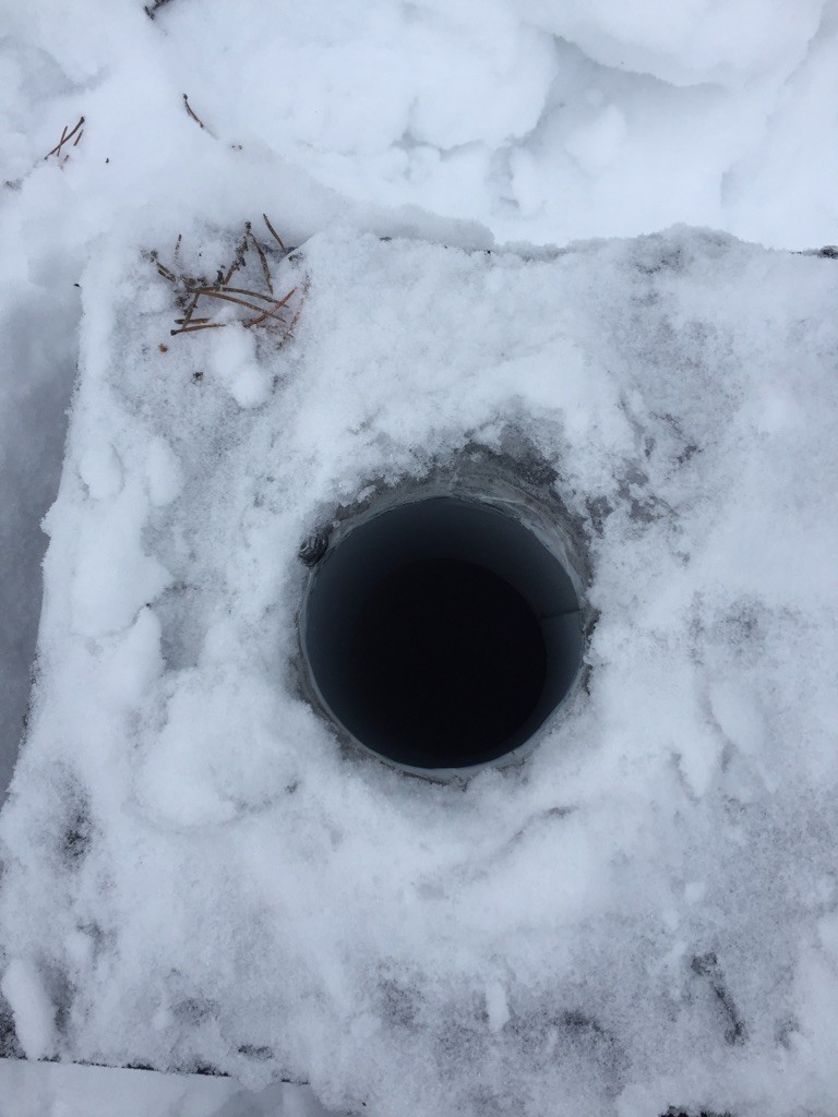 Har nyligen köpt ett radhus, var uppe på taket och skottade kring frånluftsfläkten då det har kommit väldigt mycket snö.