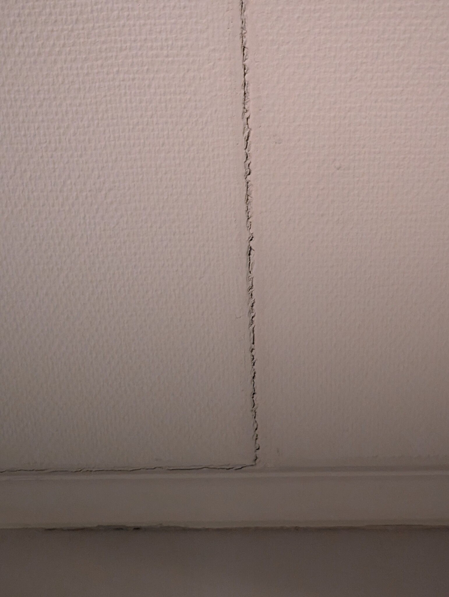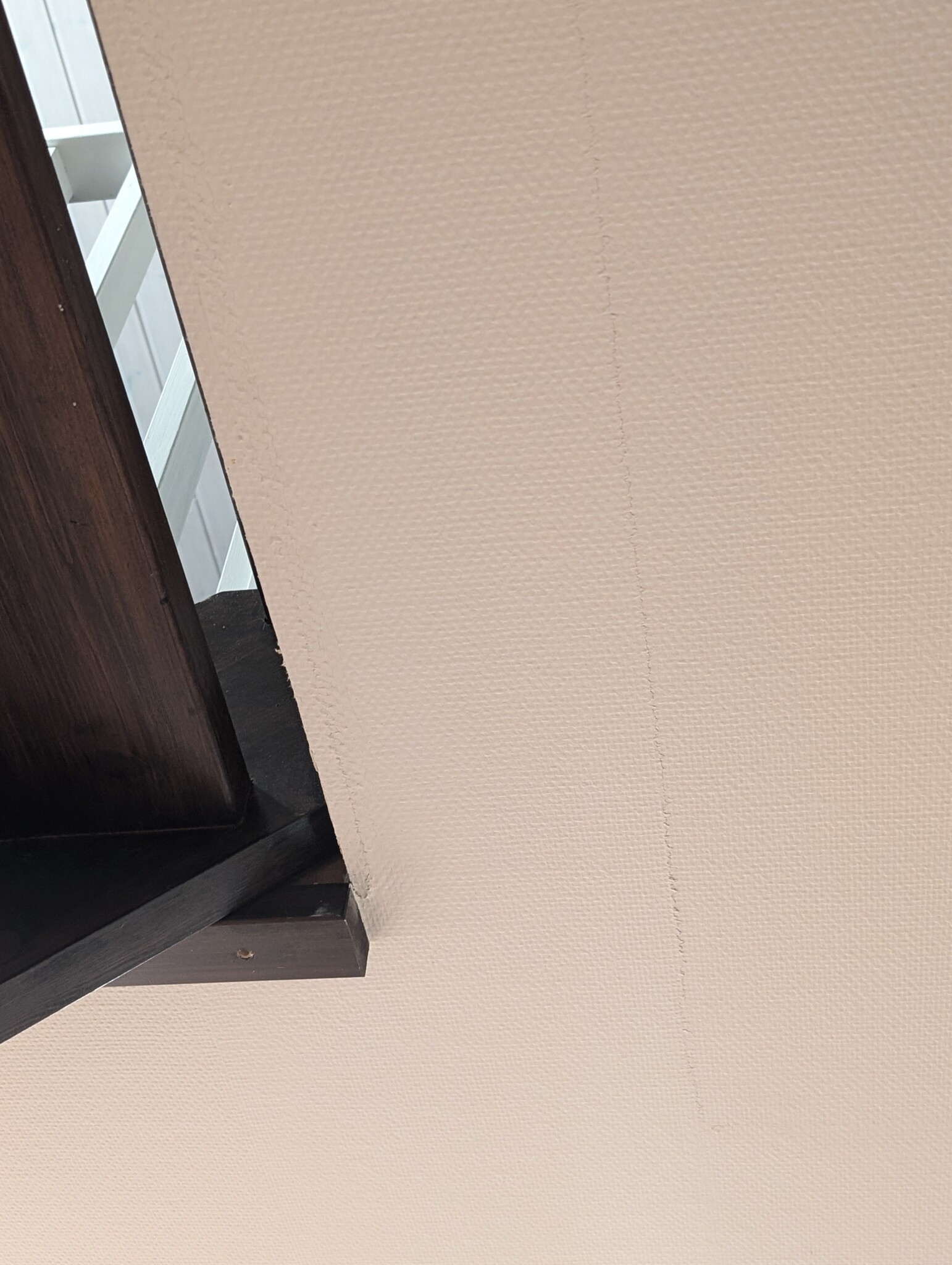Inte helt lätt att se på bilden, men det ser ut som att "spaljén" inte går hela vägen ned till golvet, korrekt? Det ser nästan ut som om ena sidan sitter monterad i väggen, medan sidan med spaljén hänger i själva spaljén och sedan vilar på något i botten, innan svängen?