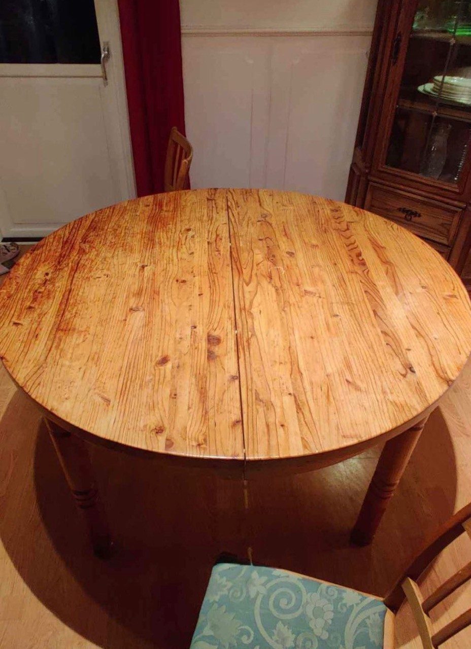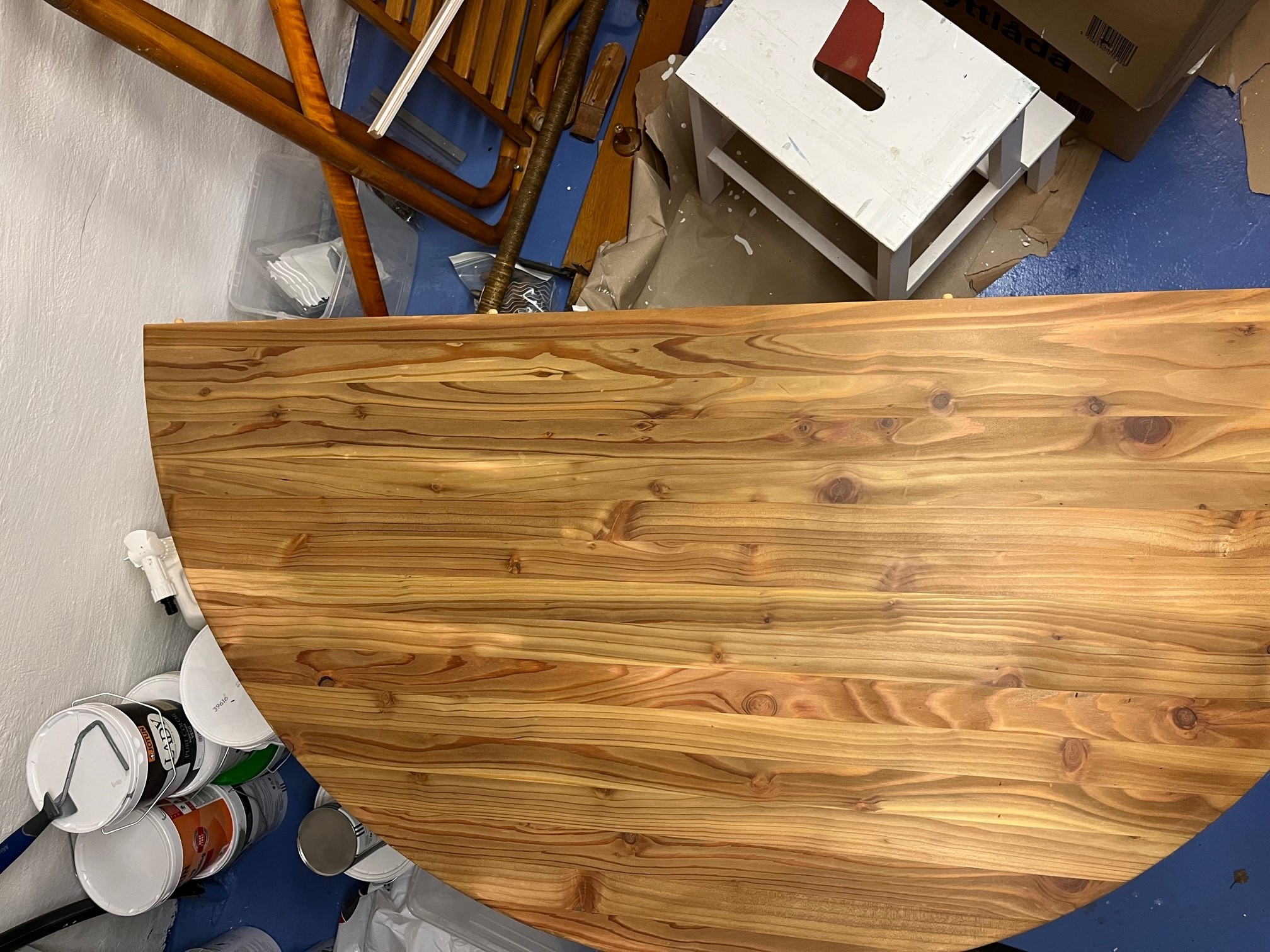 Har ni några förslag på hur jag kan få bordet till en ljus furufärg istället för denna mörka? Särskilt benen vill inte samarbeta.