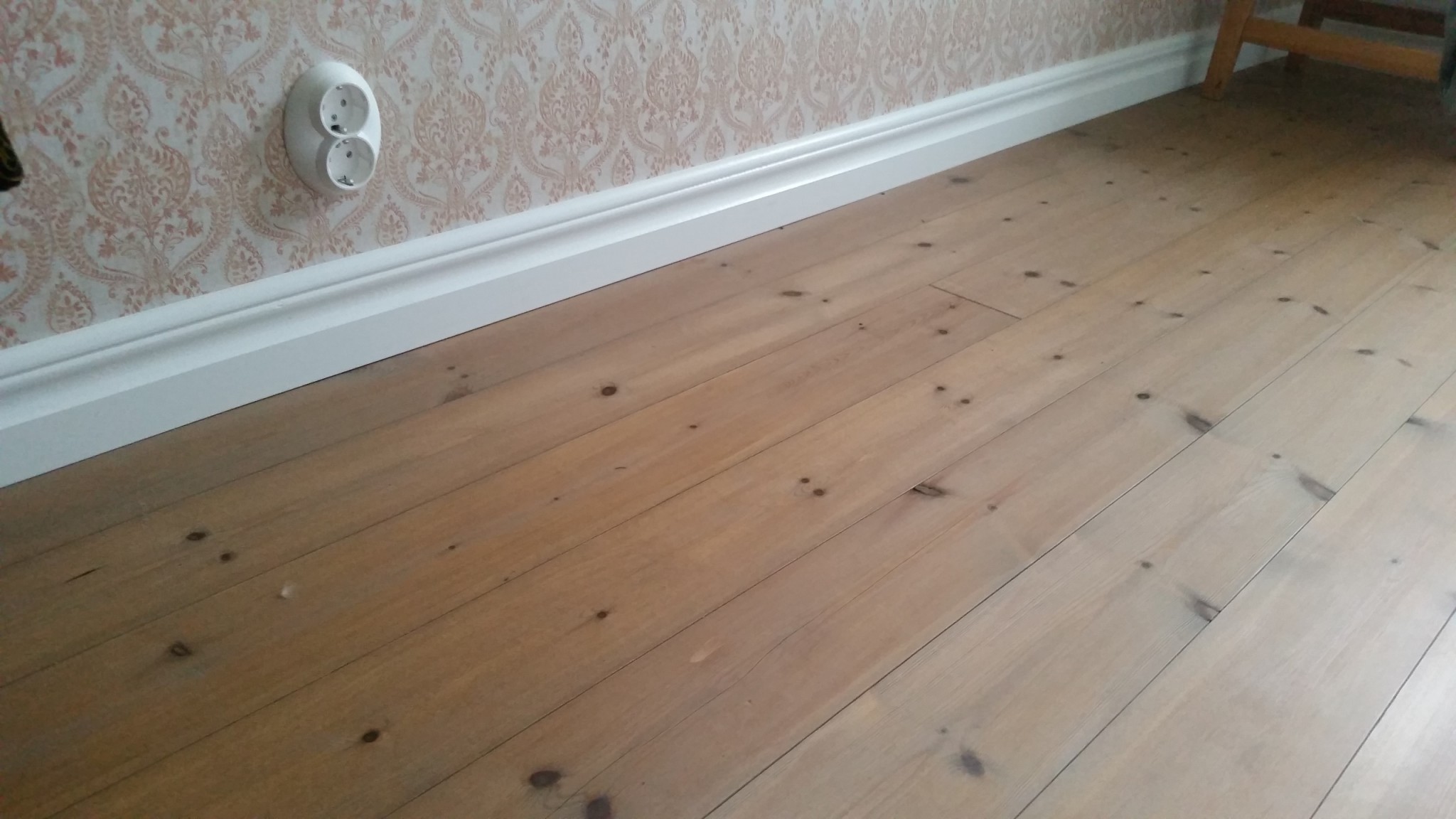 Jag kommer nog att slipa golvet ändå. Med tanke på några ställen jag ska laga och hålet jag håller på bygga igen efter gamla järnspisen osv. Ska lägga upp fler bilder sen då ja ha lite mer att visa.