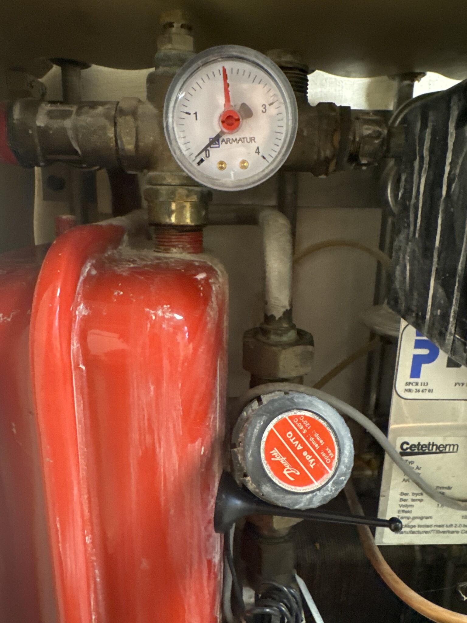 Jag försöker bli klok på vad som kan vara fel. Trycker är otroligt lågt… 0,1 bar då det ska ligga på 1,2 ungefär.
