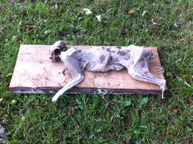 Renoverade hallen i stugan och fann en halv katt i krypgrunden. Halv längsgående, det som legat ner mot jorden hade multnat medan överdelen var torr, typ mumifierad.
