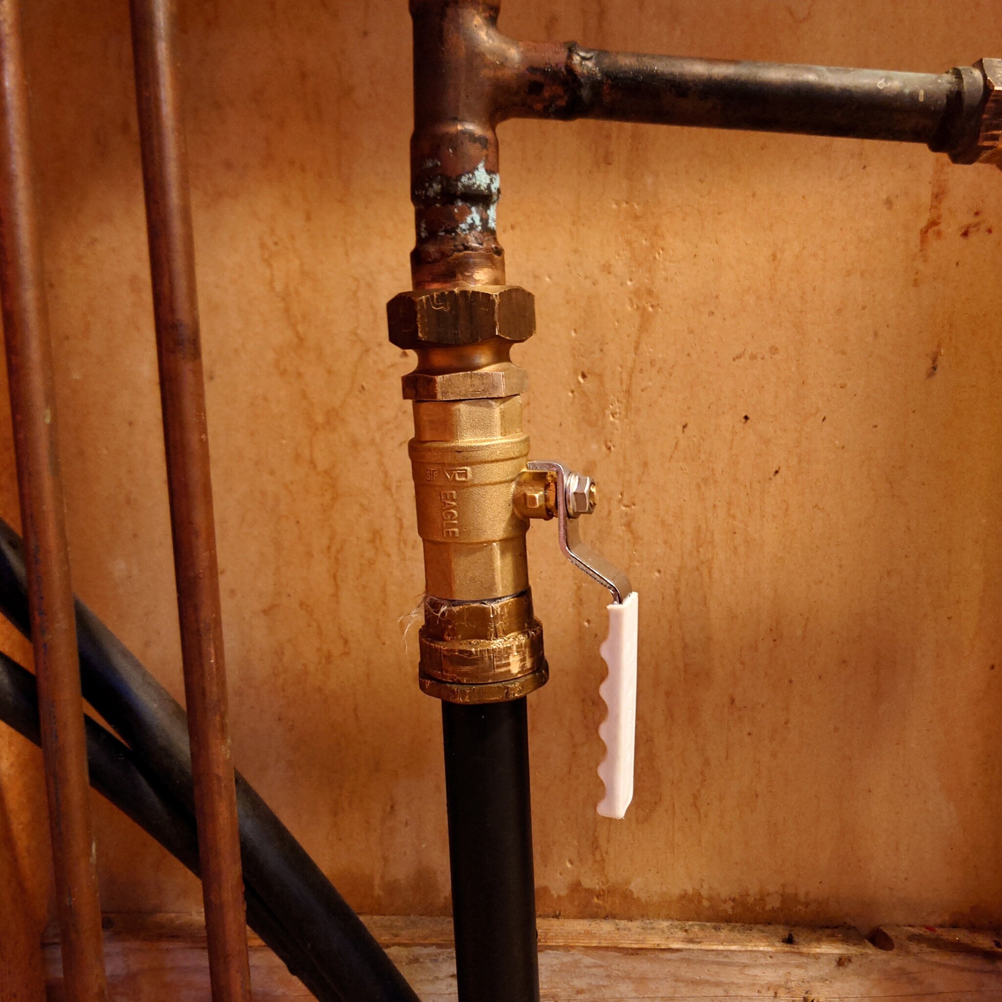 Behövde byta ut den gamla skjutventilen på inkommande plaströr, då den inte slöt tätt. Kåken är från '74, så även de flesta installationer.