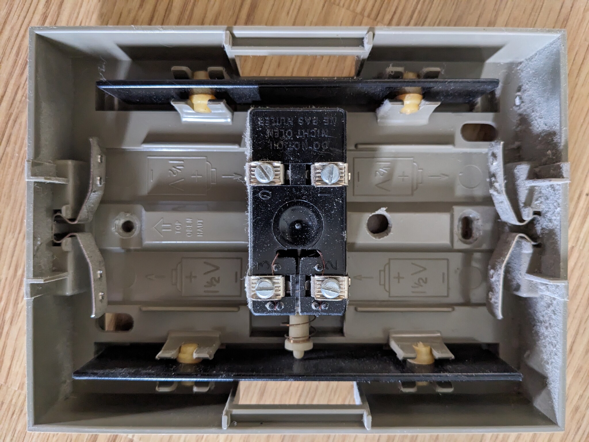 Jag skruvade ner innerdelen till en gammal ringklocka till ytterdörren som inte använts på länge. Utedelen är inte kvar.