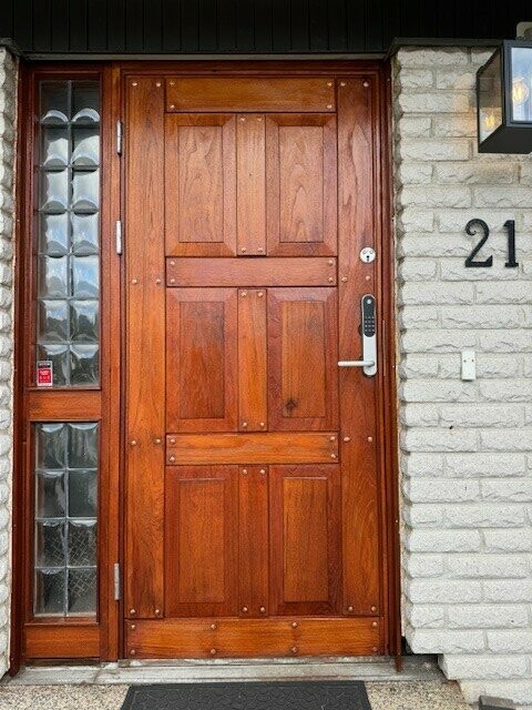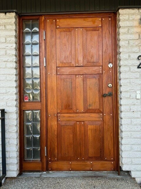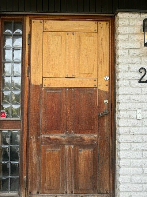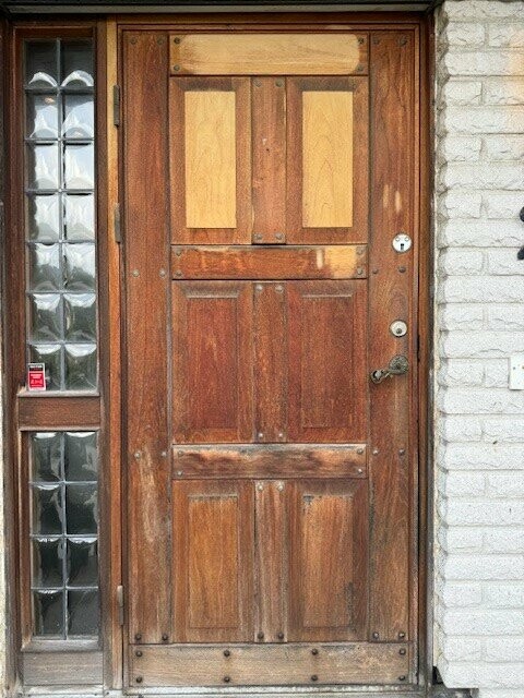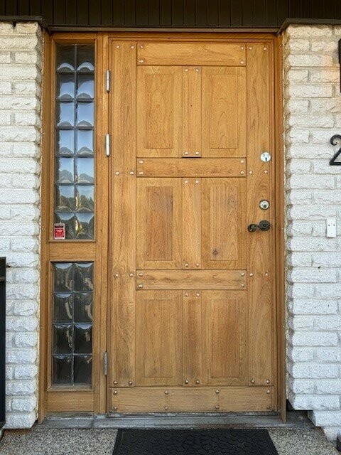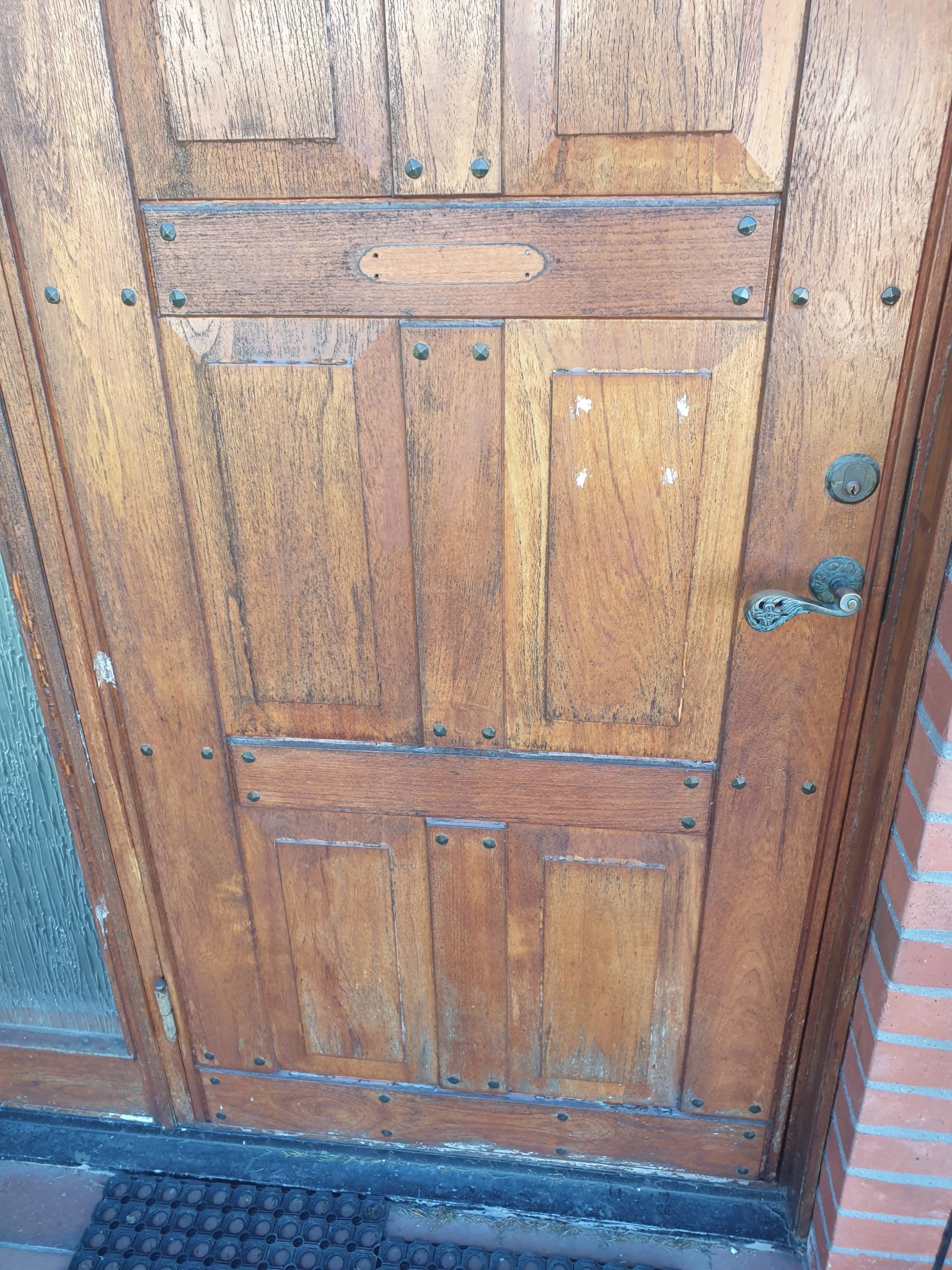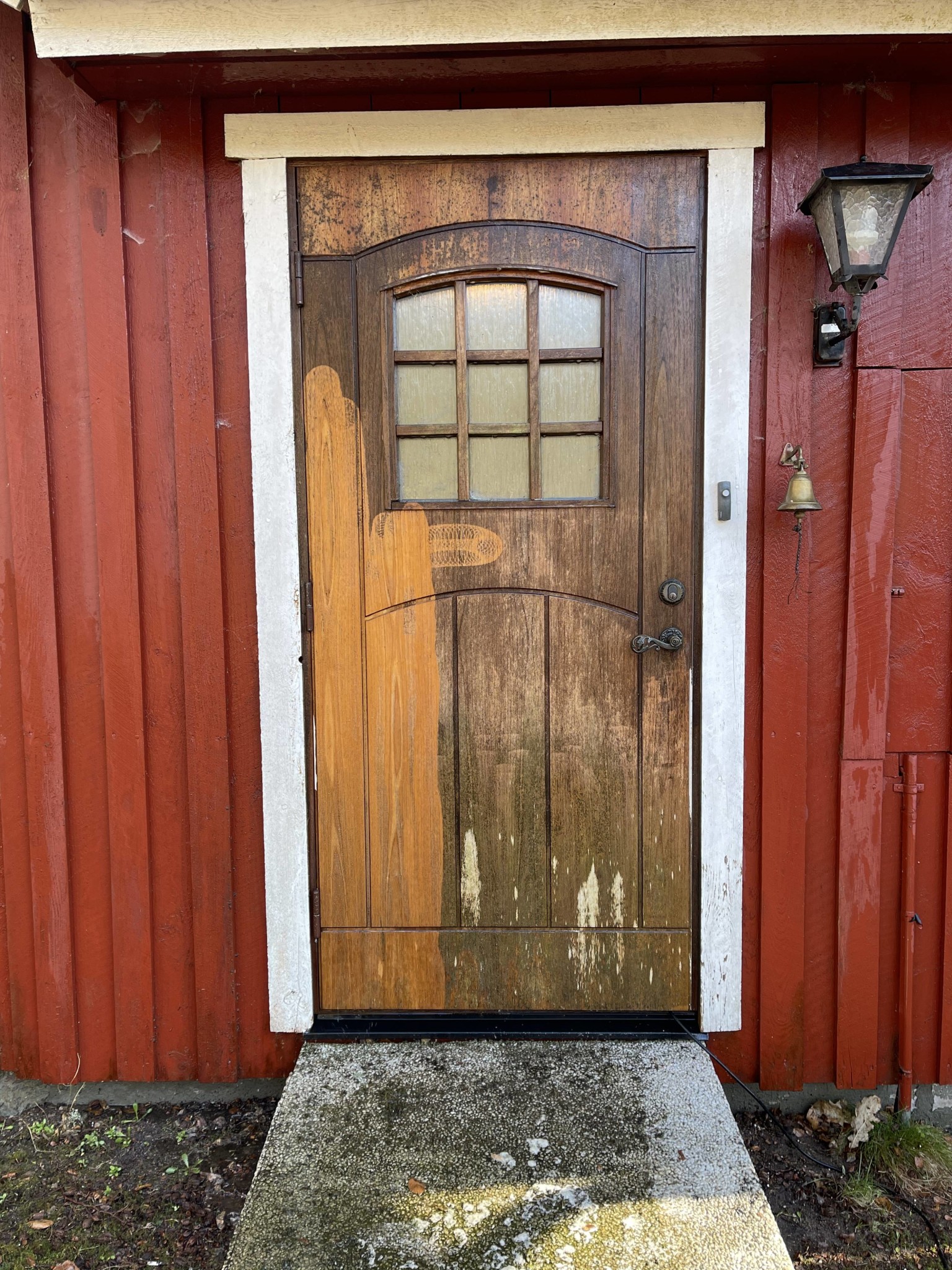 Jag har en gammal ytterdörr som skulle behöva lite kärlek. Huset är fråm 1960-tal, o säkert dörren med. Är det teak tror ni? Det ser ut att sitta dekorspik på därren. Tror ni den är något man kan ta bort eller har den en funktion?