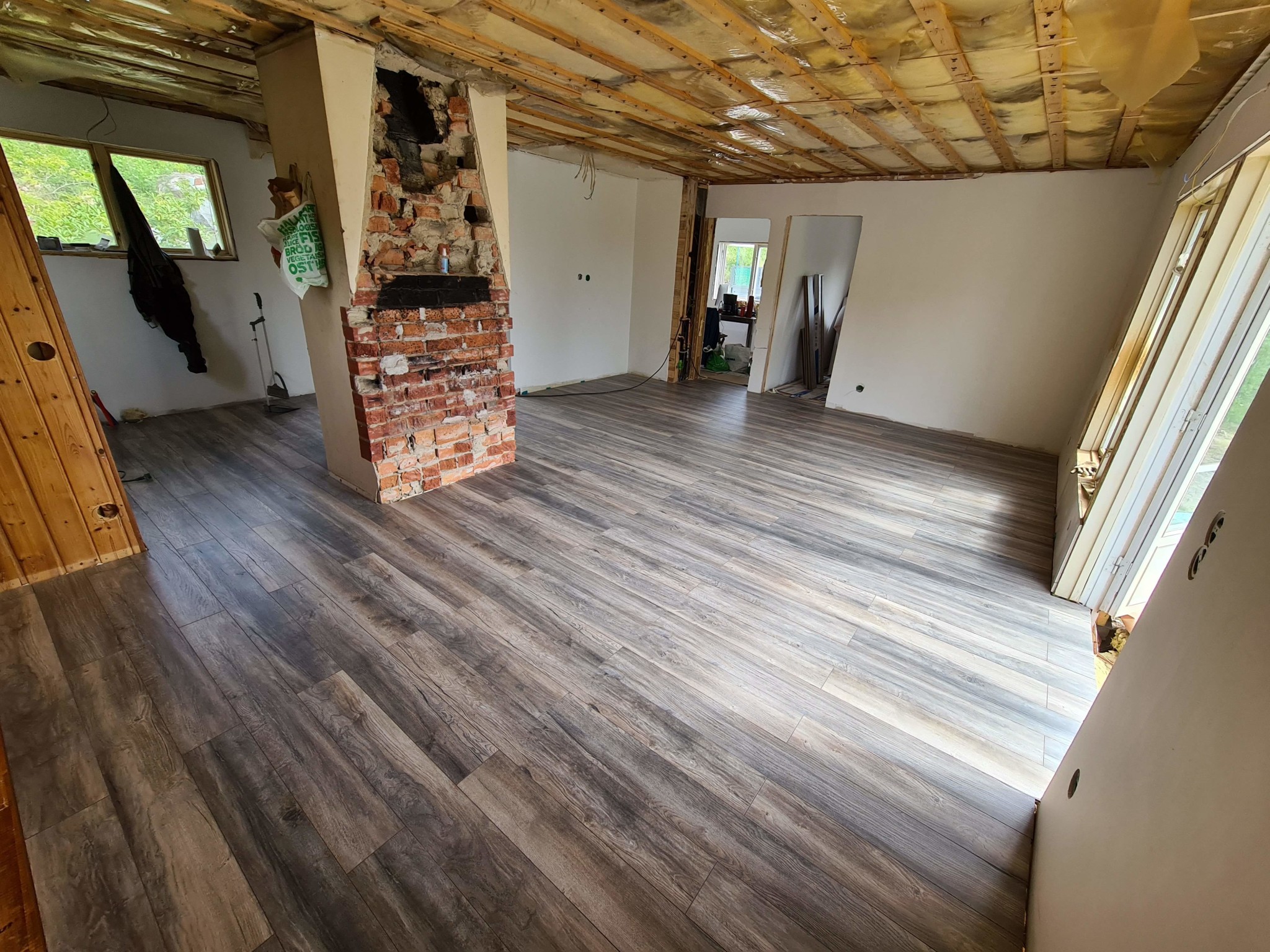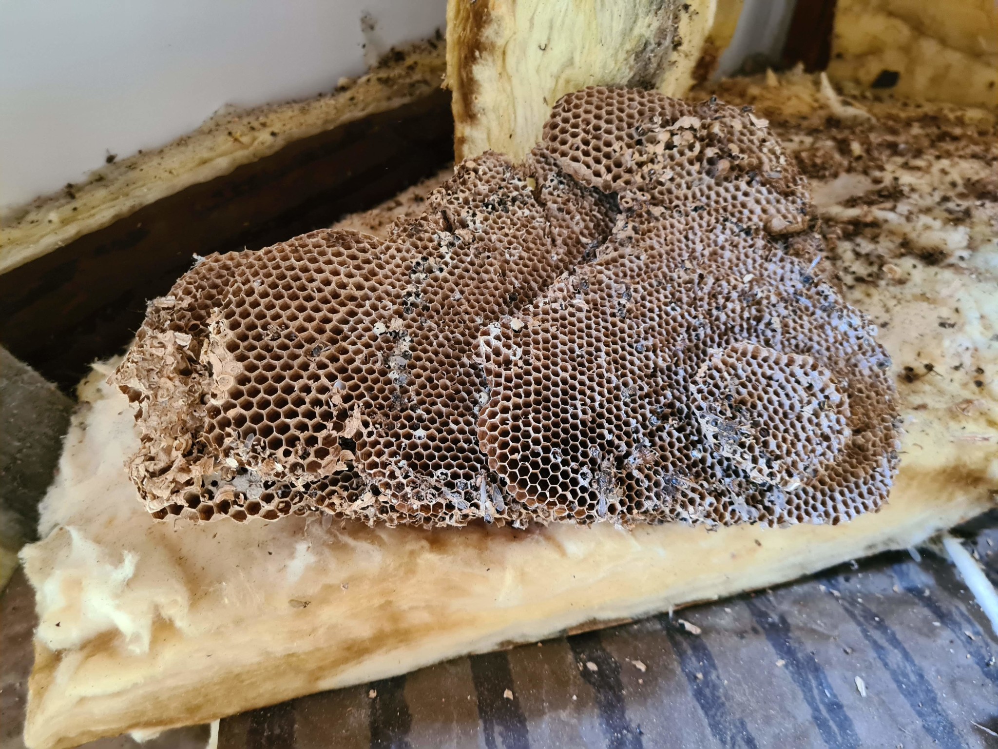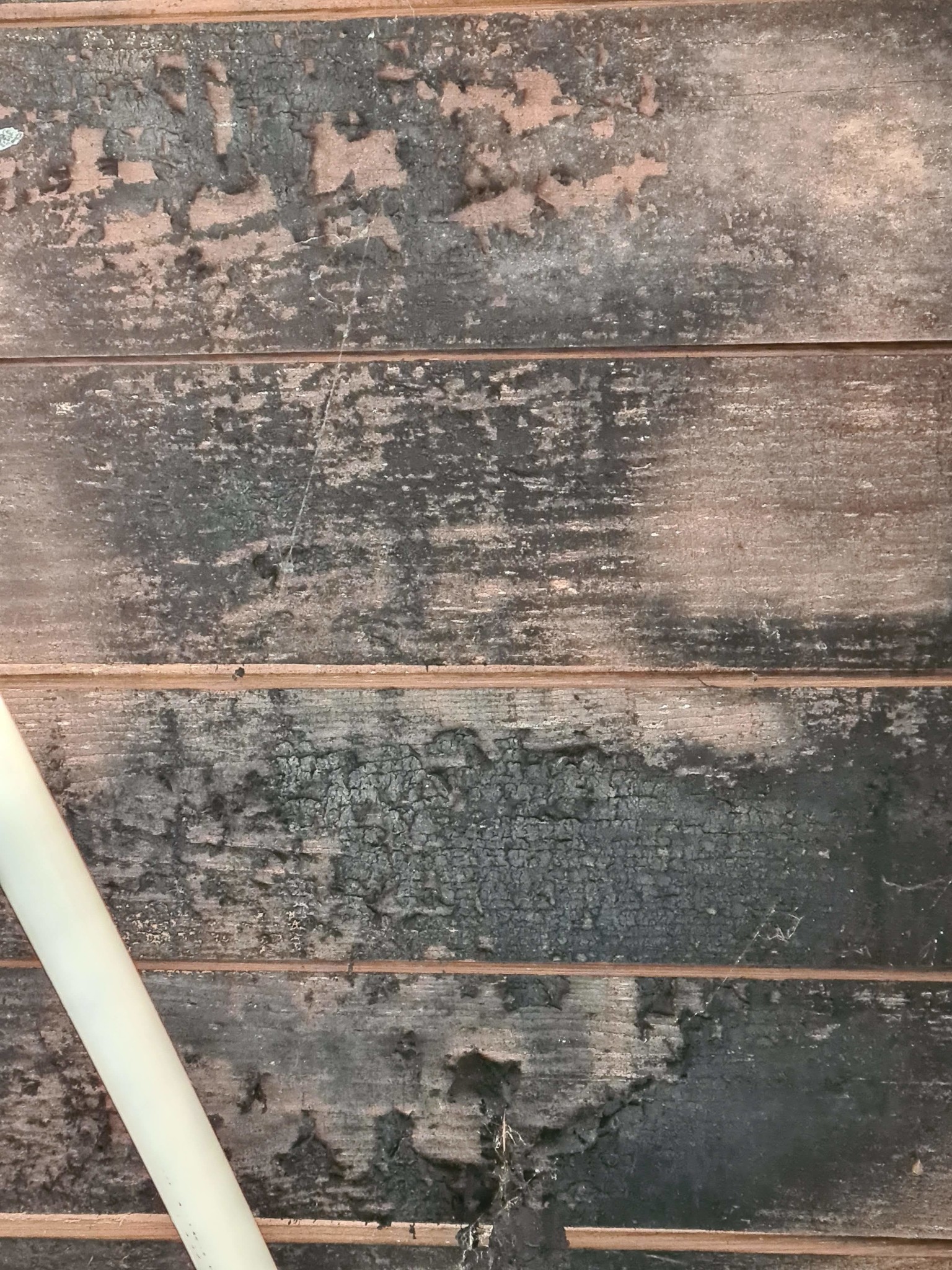 Vi har köpt ett fritidshus från 60 talet, ganska sliten och vi har börjat förnya vissa delar, bland annat tagit bort gammalt takpanel och upptäckt då att isoleringen är i dålig skick. Det finns missfärgningar på olika ställen (svarta) så vi tog bort all isolering och kommer att lägga till en ny.