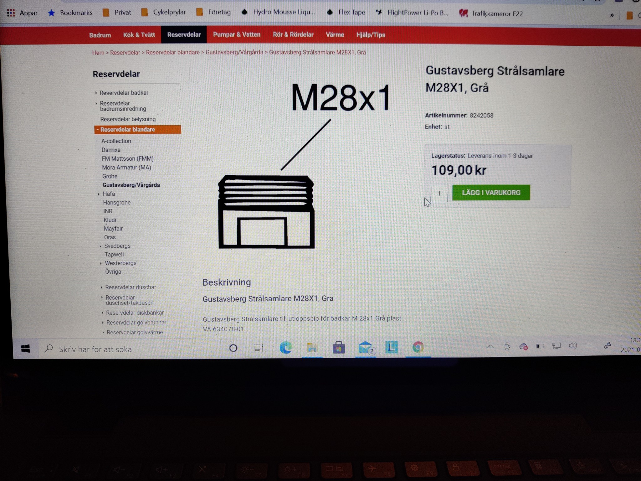 Behöver bygga en adapter för anslutning av duschslang, då det ord uttaget är ockuperat av en takdusch.