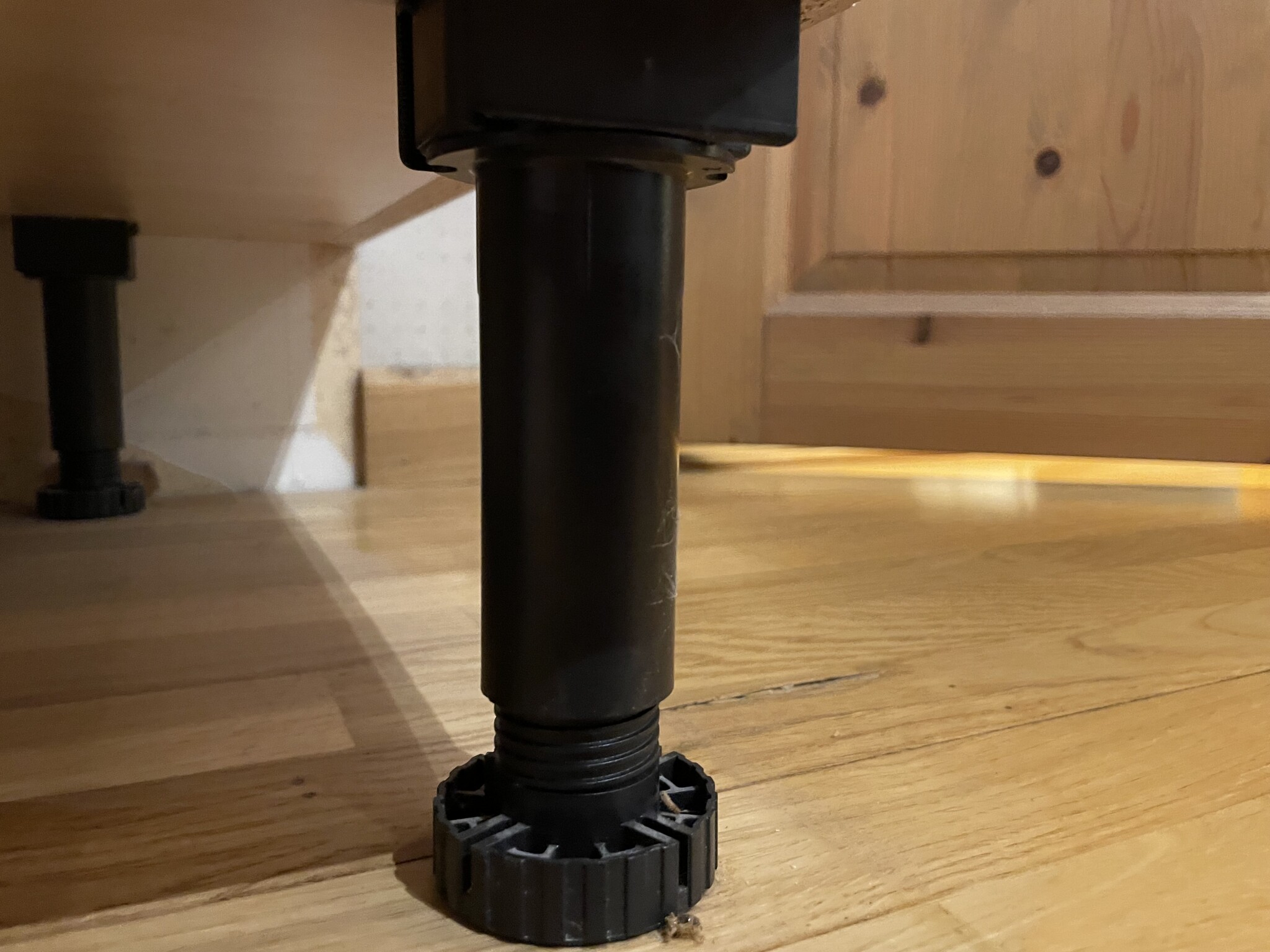Om de inte går att höja ytterligare en cm – Lägg en 1 cm distans mellan golv och stöd. Du ska väl ändå sätta sockel där sen?