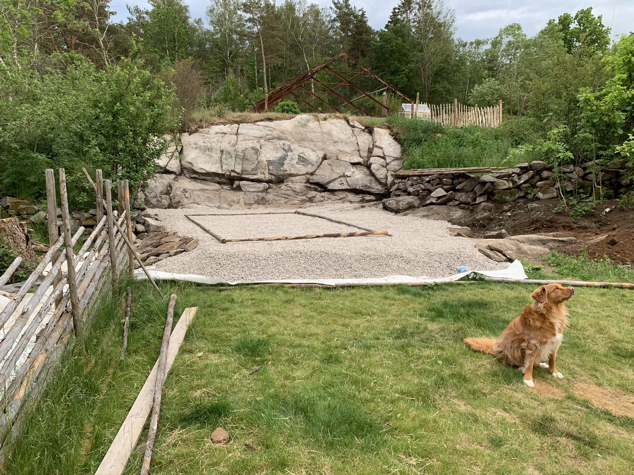 Lånar tråden lite, kanske kan den vakna! Skall placera ett växthus på ytan nere. Har fullt upp med grus mellan 20-60cm beroende på vart berget är. Det är alltså berg under hela.