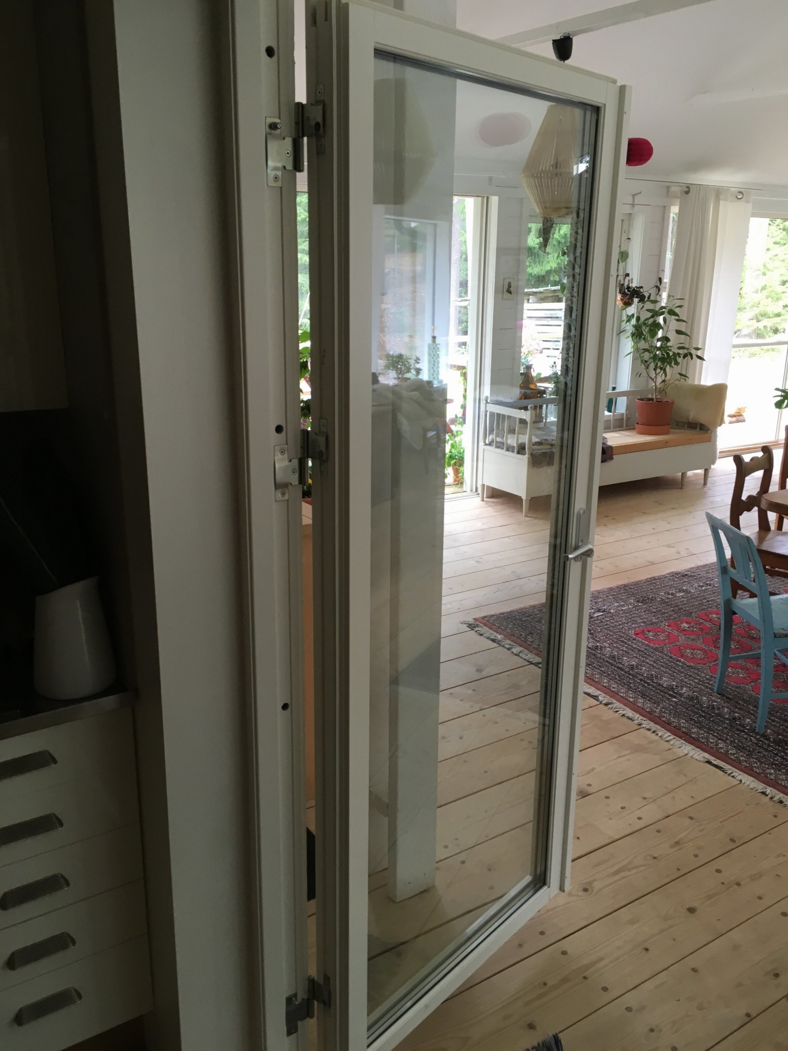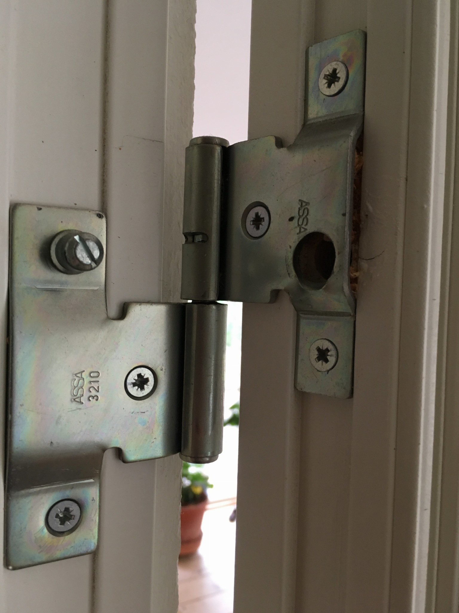 Skulle behöva lyfta av altandörren för flytt till annan vägg, men den sitter som berget! Finns det något trick med dessa gångjärn? Assa 3210.