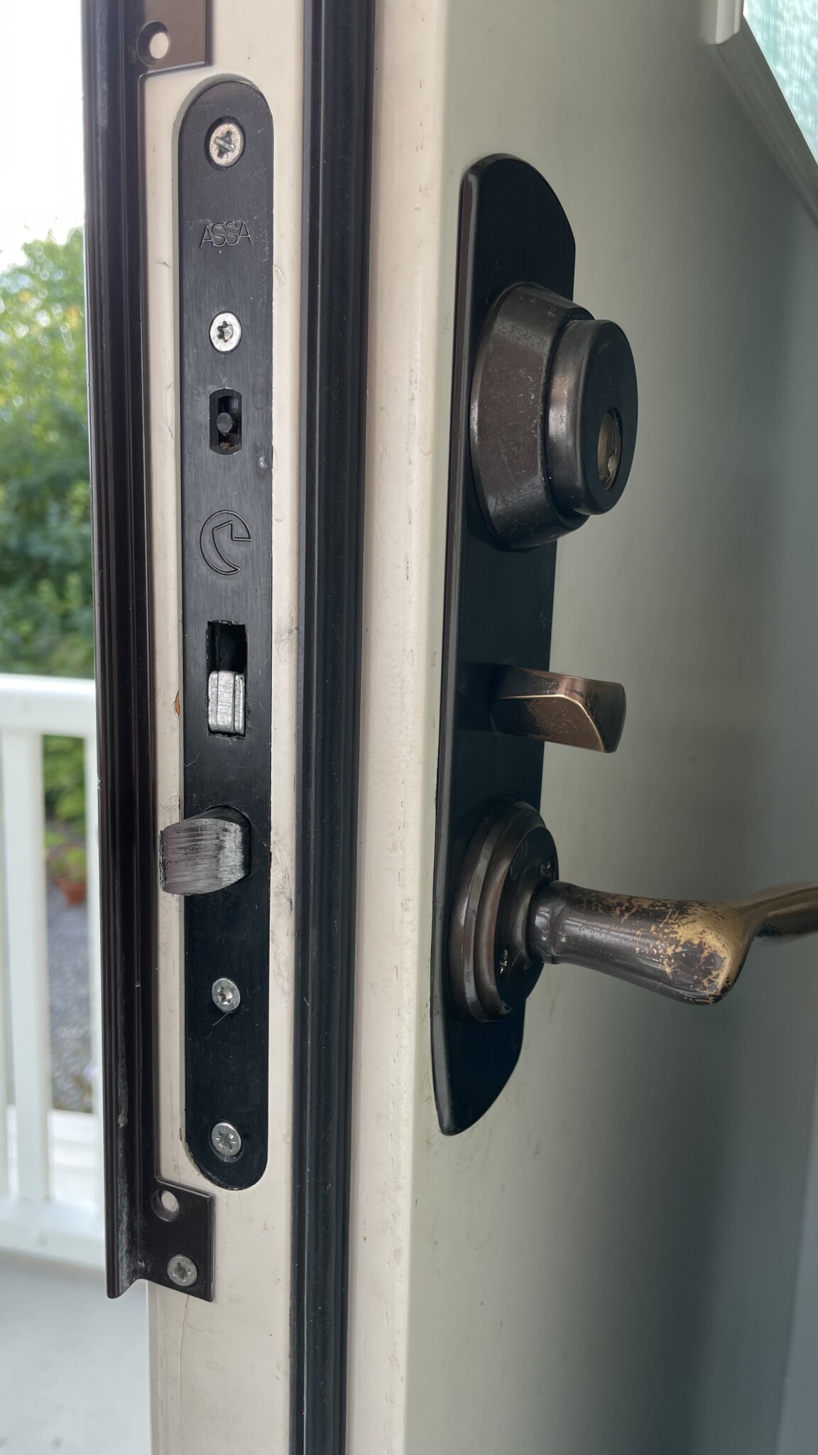 Jag har liknande problem som ni. Ett Assa 2000 eller 2002 (minns inte vad jag köpte för typ 20 år sedan. Först blev handtagen slappa och nu går inte vredet utan endast nyckel. Vill ogärna byta nycklar men vill behålla den brunoxiderade modellen.
