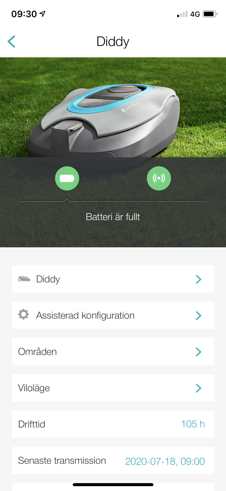 Jag kan i stort sett bara: Starta, Parkera och göra Scheman, i appen. Det är dock en äldre generation av klippare: Smart Sileno 1000 (alltså ej Life)