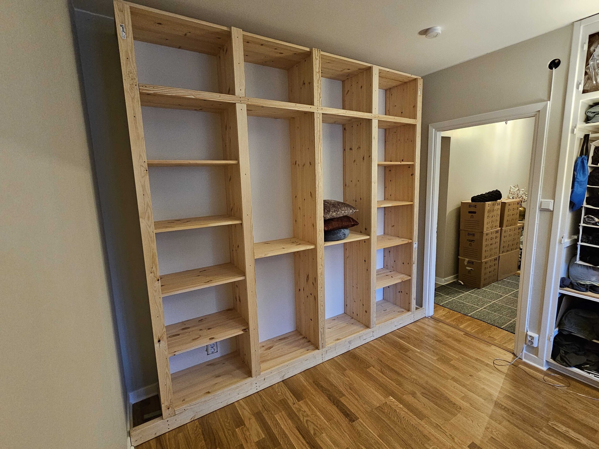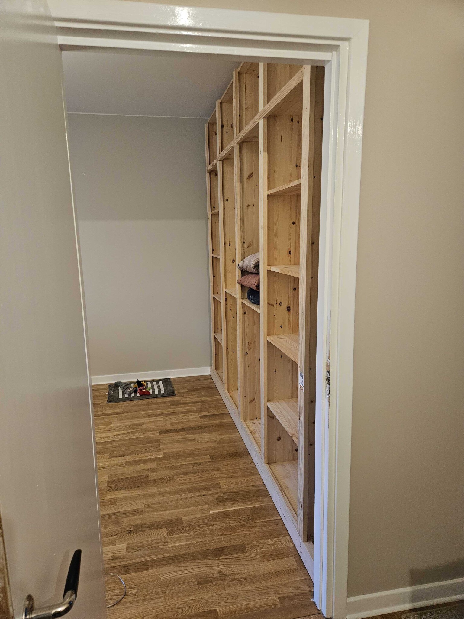 I need to build doors to a wardrobe that I built and there are some nice references in this thread. I did think about doing the wardrobe with small planks and plywood, but it felt too complicated so I just built it like this