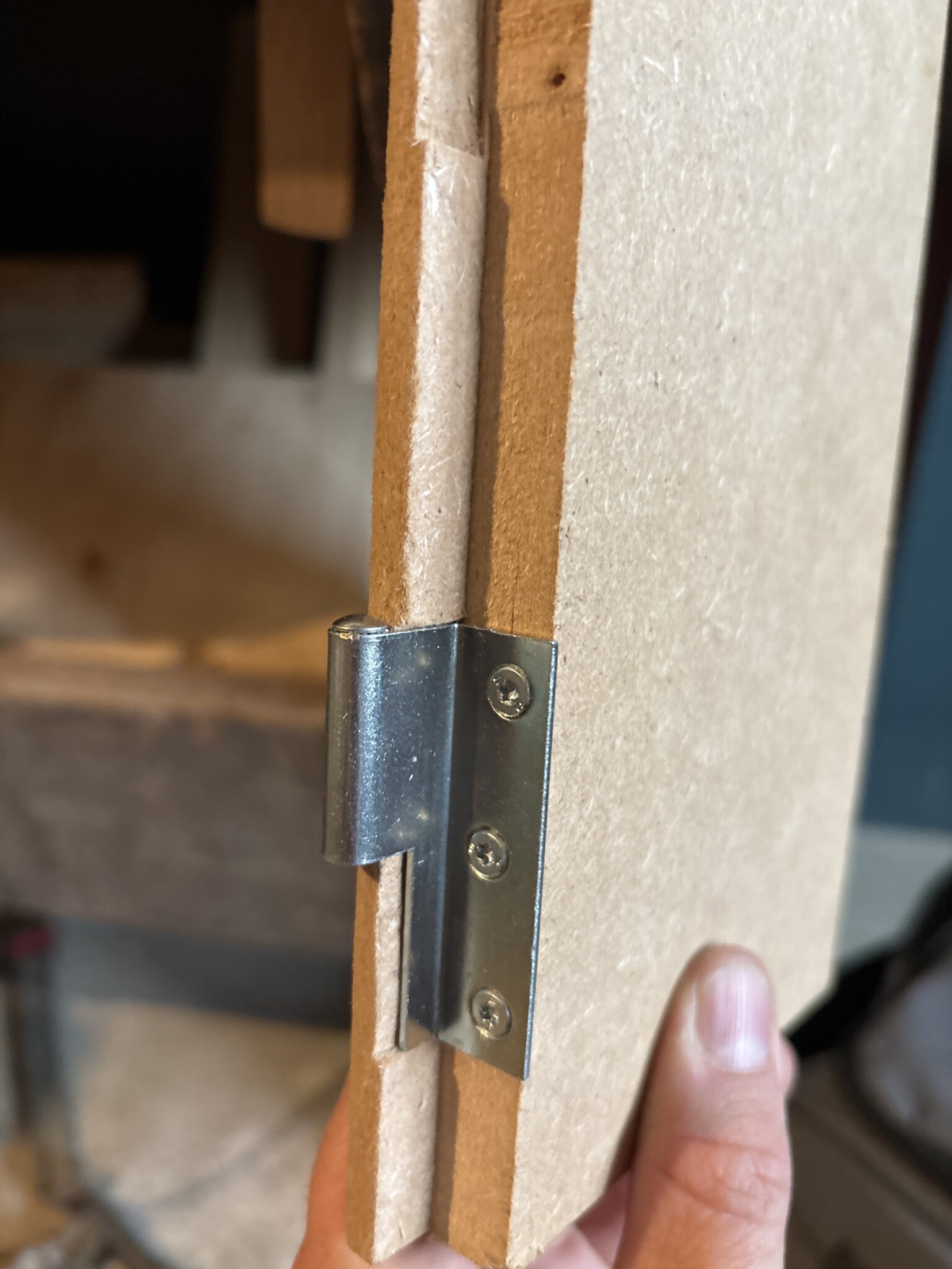 Kan som sagt inte klura ut vad det kan vara mer än att det är skruvhuvudena som tar i. Tänker ju att de borde försänkas helt pga de kom med gångjärnen… Kanske bara får bita i det sura äpplet och köpa de moderna gångjärnen 😅.