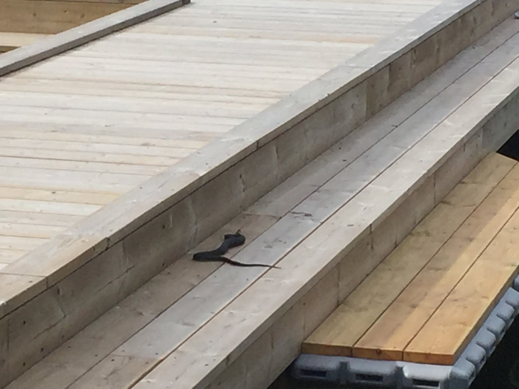 Kanadagäss, olika sorters dykänder och måsar nyttjar vår brygga och strand som kärleksnäste, allmän festplats och offentlig toalett.
