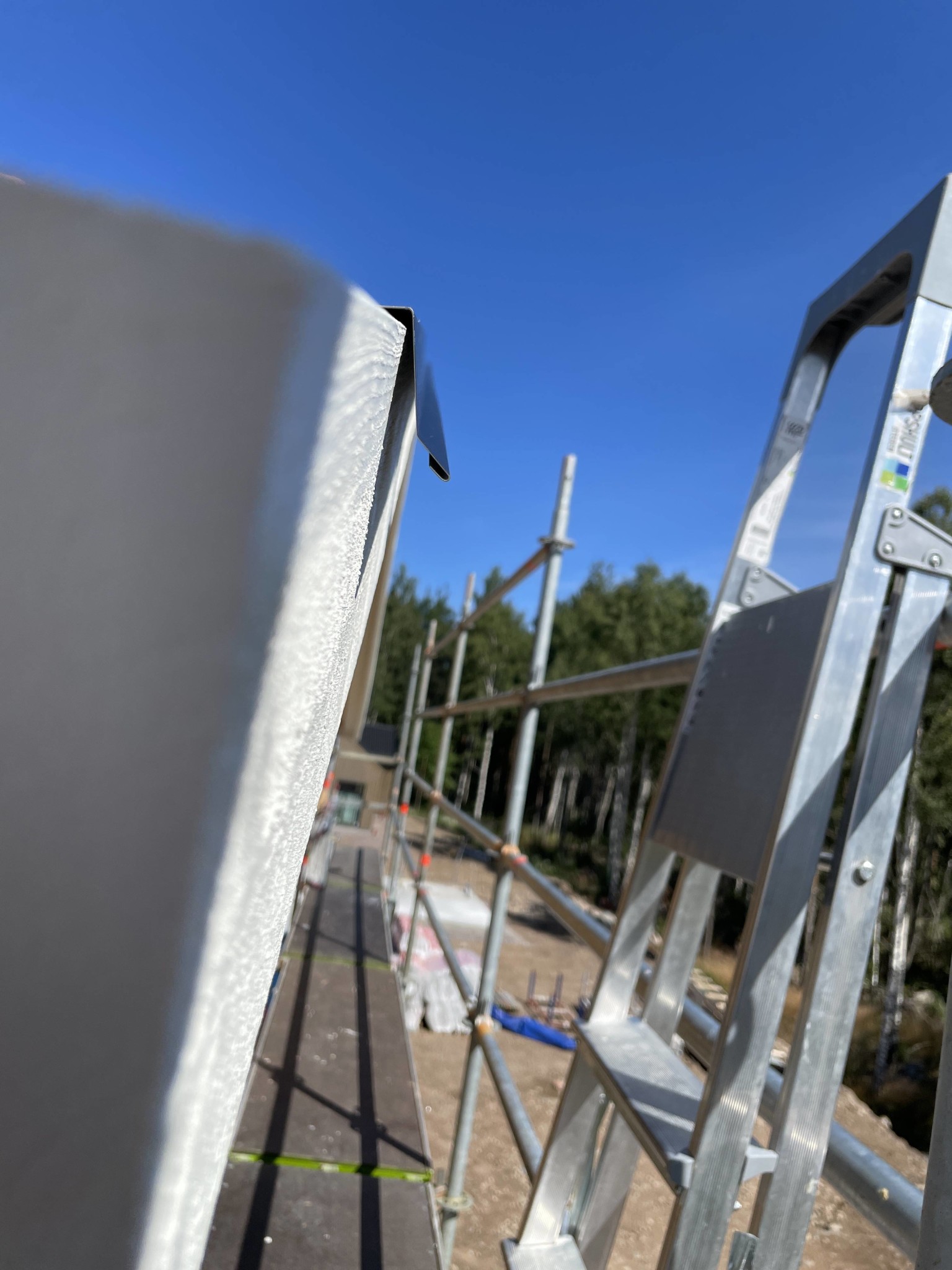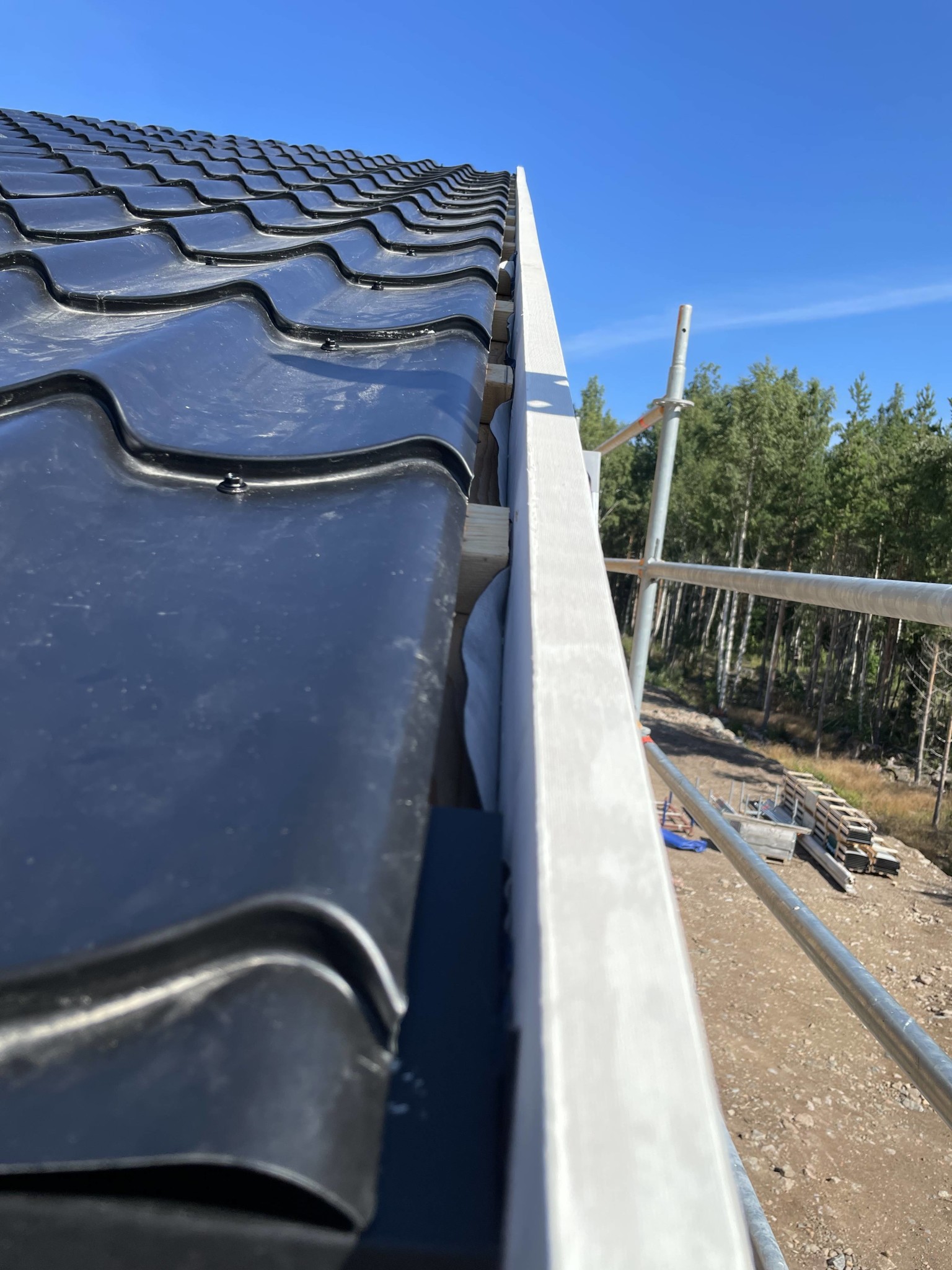 Har nu lagt plåttaket och ska till att börja med gavelbeslag. Det är ett Plannja Regent plåttak.