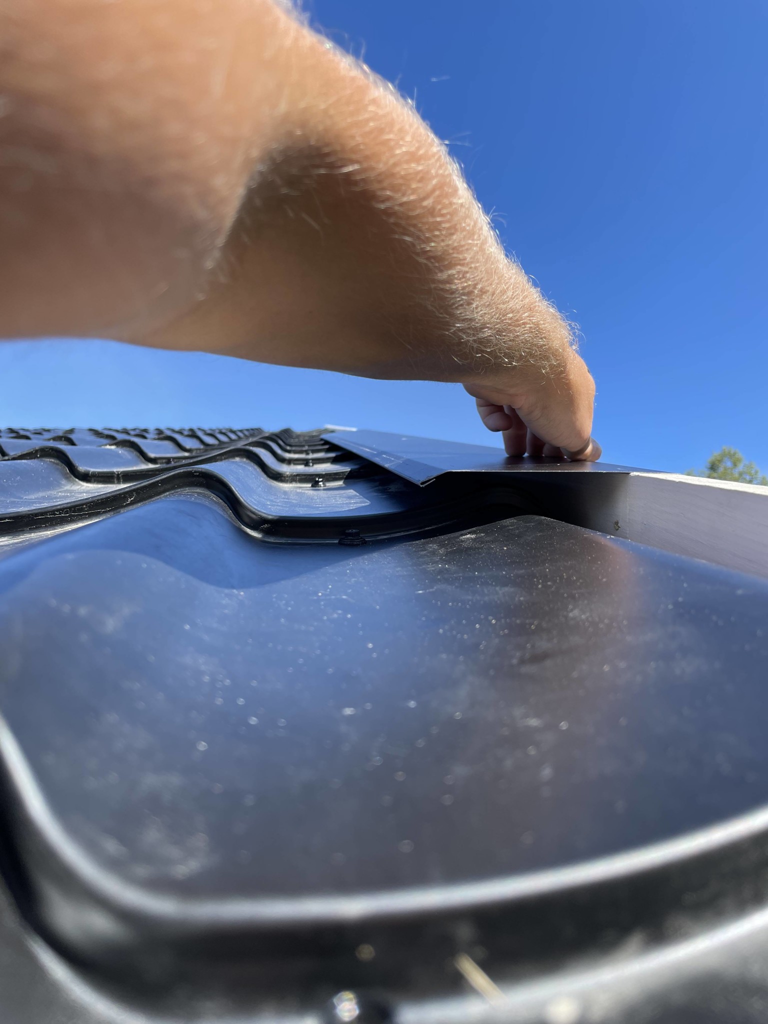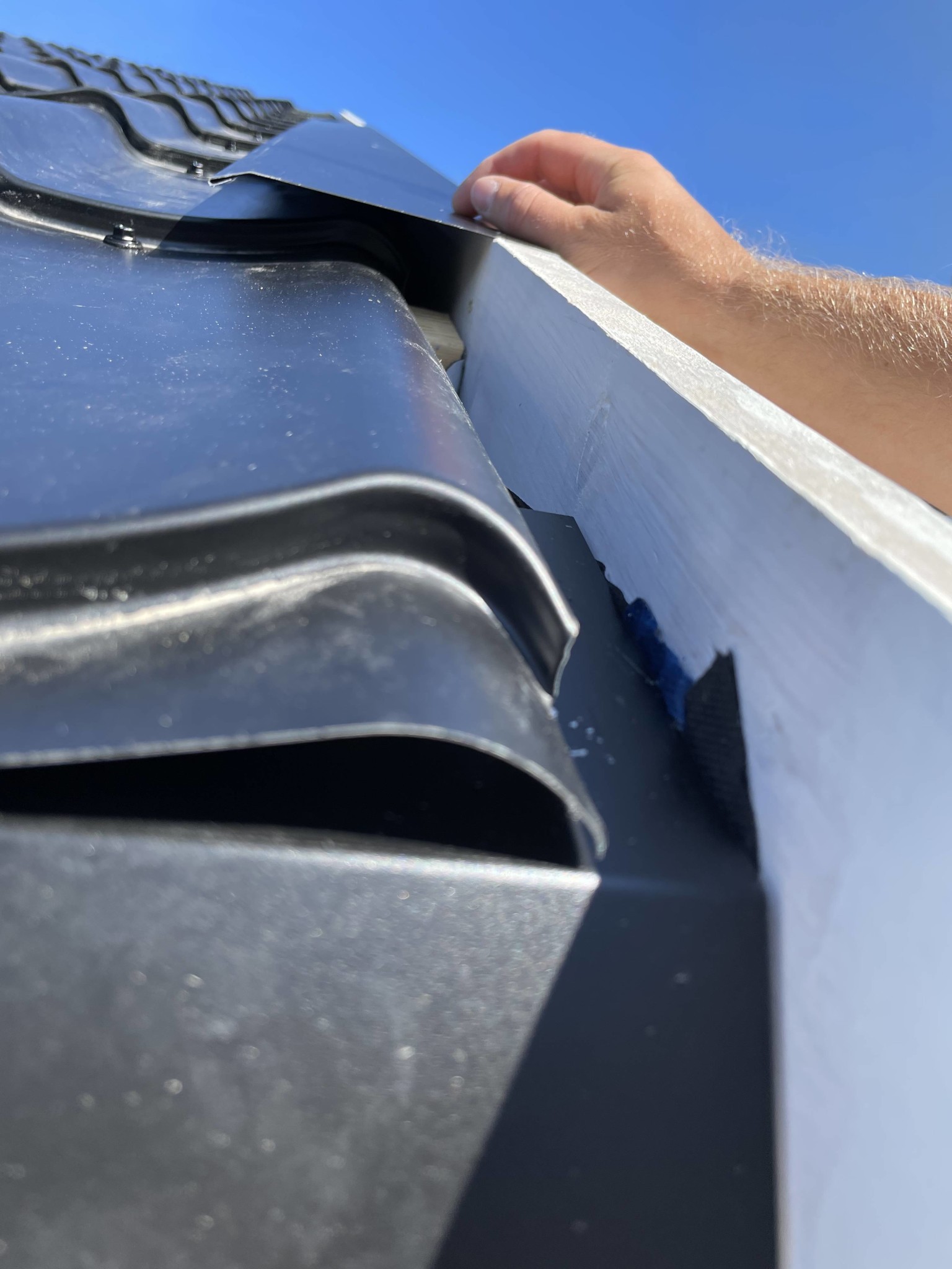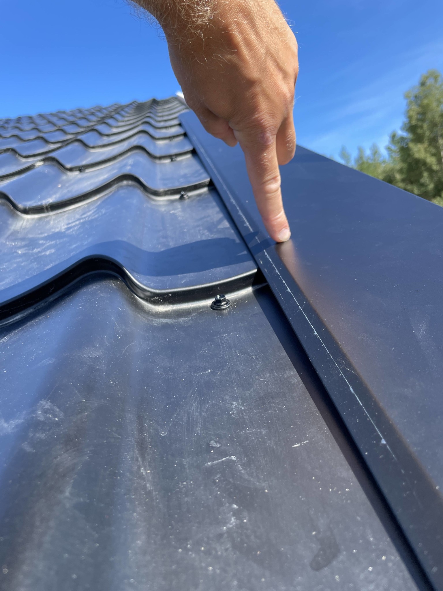 Det jag märkt nu och som kanske är lite svårare att se i bilderna är gavelbeslaget ligger cirka 2 cm över takplåtens profiltopp.