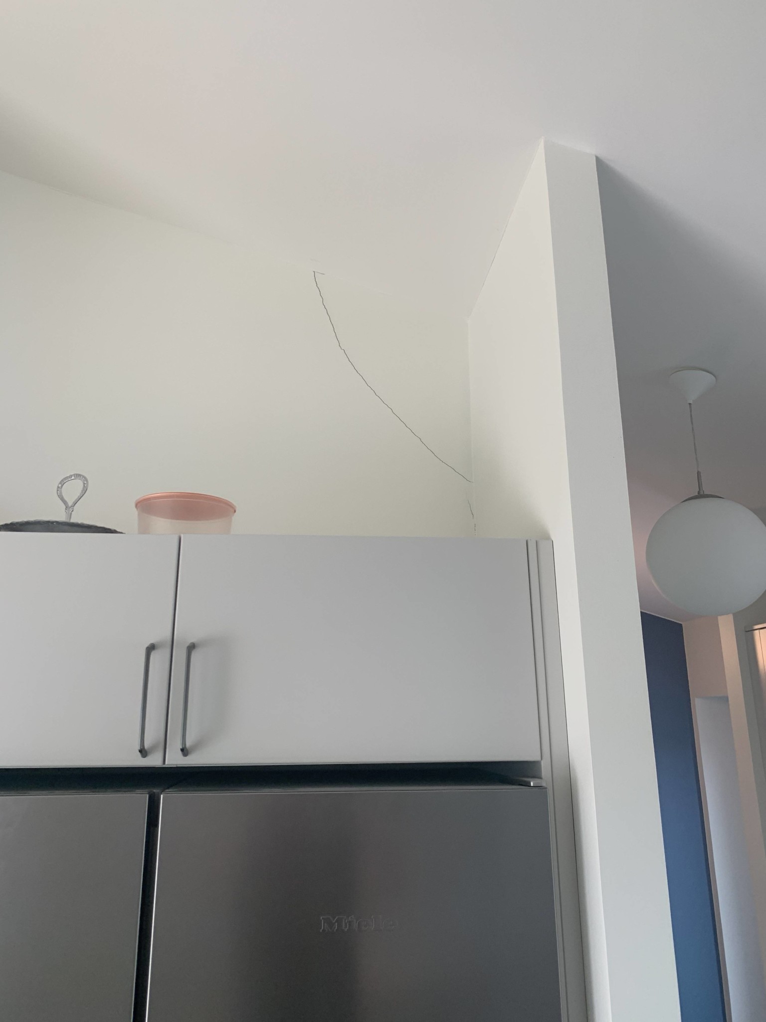 Hur ska jag se till att detta åtgärdas vid 2-års besiktningen? Jag har planer på att fästa ett ELFA-system på ena sidan och ytterligare köks-skåp på andra sidan i framtiden, och det lär väl inte hålla med en sådan enorm spricka?