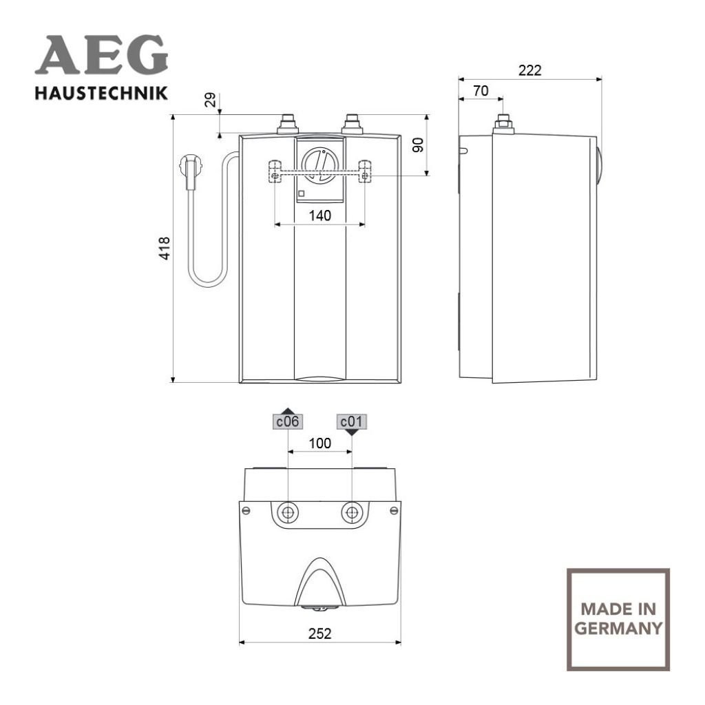 warpi, den AEG som du visar kräver speciella armaturer (kranar). Den är en s k trycklös apparat och klarar inte att anslutas direkt till matande KV. Istället gör specialkranen när man öppnar dess VV-kran att KV släpps in i AEGn utan tryck. Medan KV strömmar in i AEGn så trängs VV i denna undan och kommer ut ur VV-kranen däruppe.