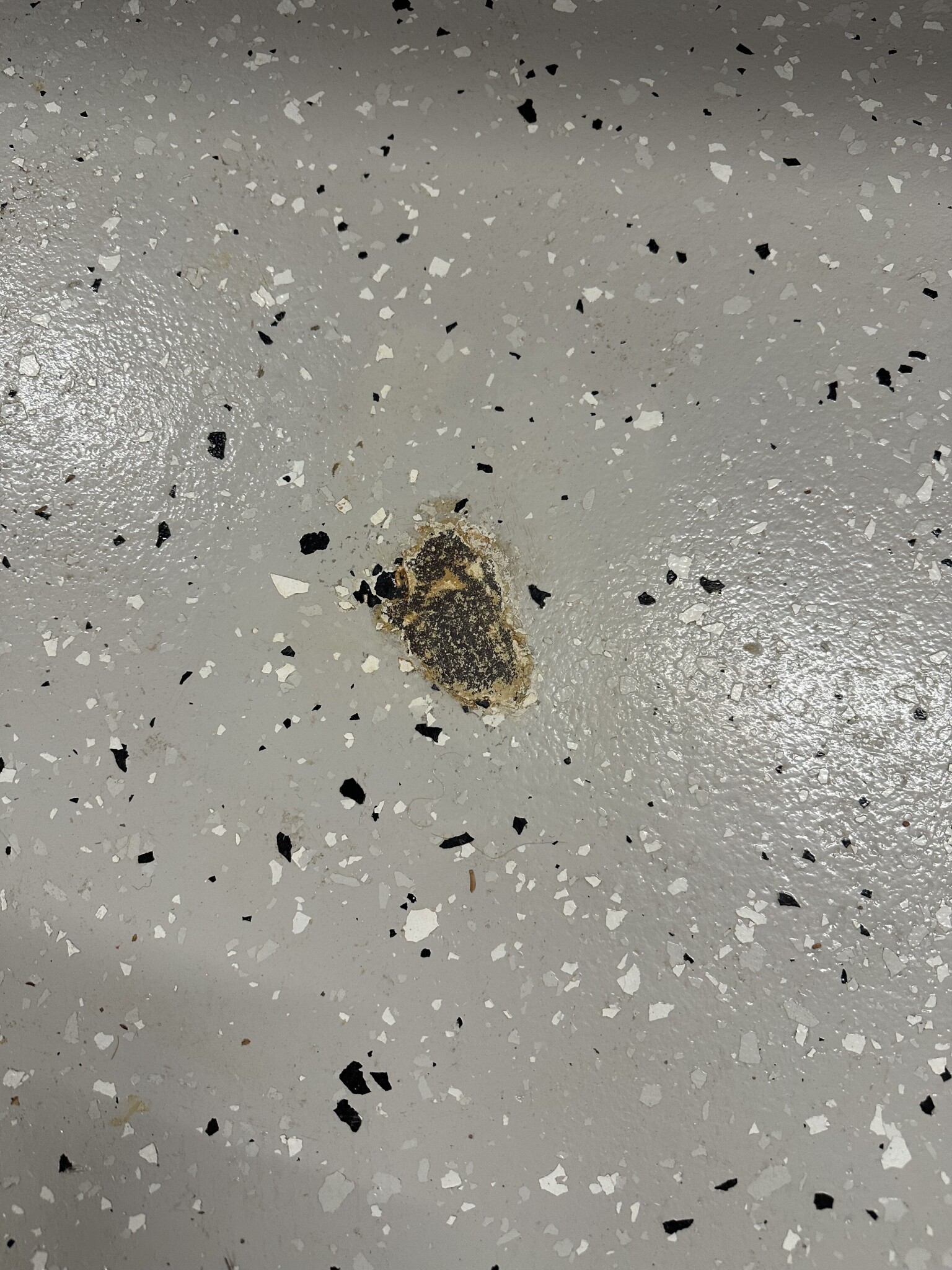 Har kört Biltemas tvåkomponentsfärg på golvet men har en fläck där det vägrar fästa. Verkar som något tränger igenom där. Har nu slipat och försökt få ner men utan resultat.