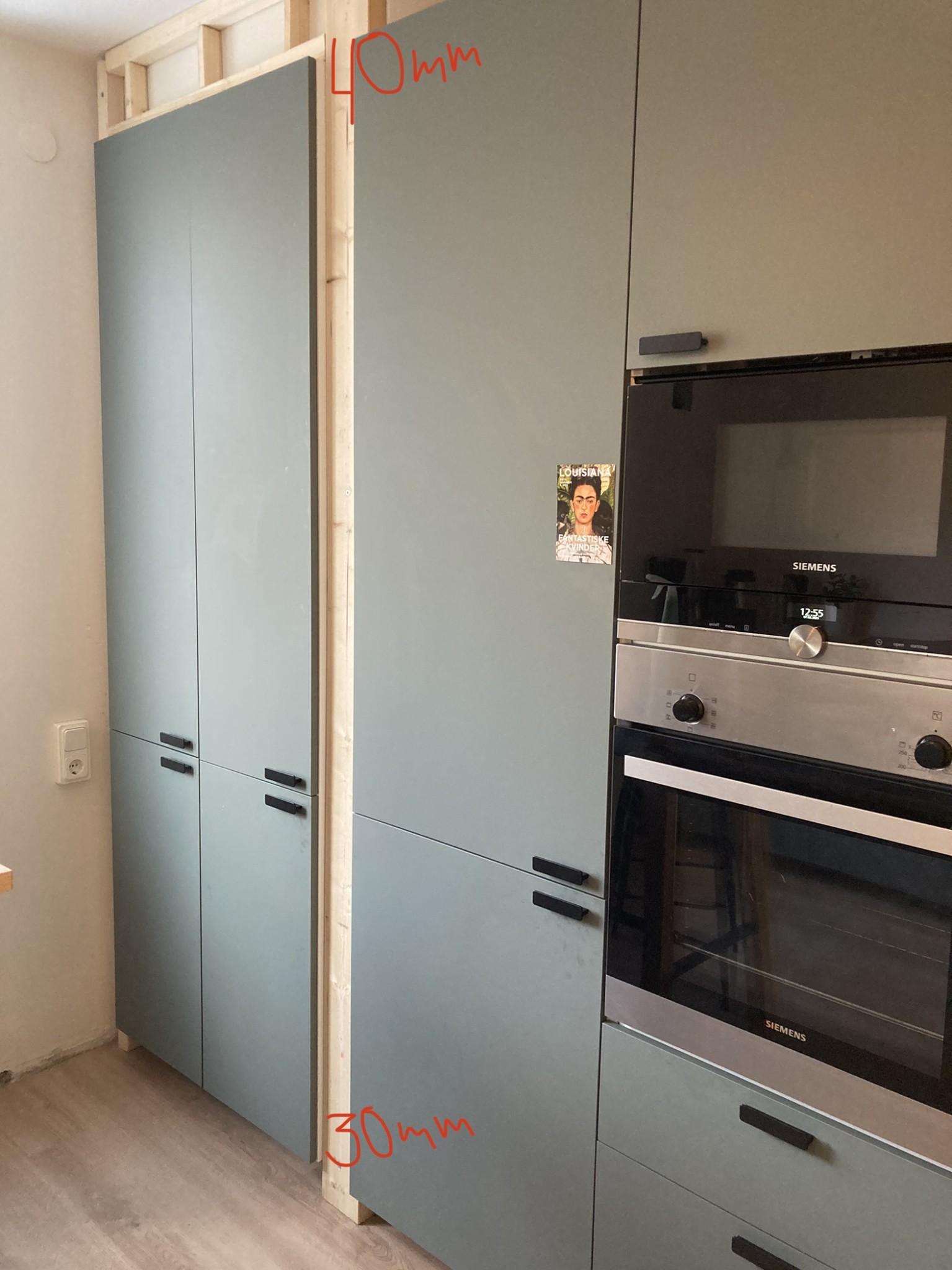 Ska gipsa en 150 mm bred vägg mellan två köksskåp. Väggen som jag fäst regeln mot lutar någon grad vilket ger en skillnad på 6 mm om jag jämför toppen med botten. Det kommer att synas väldigt mkt eftersom gipset inte kommer att vara i nivå med skåpsfronterna.