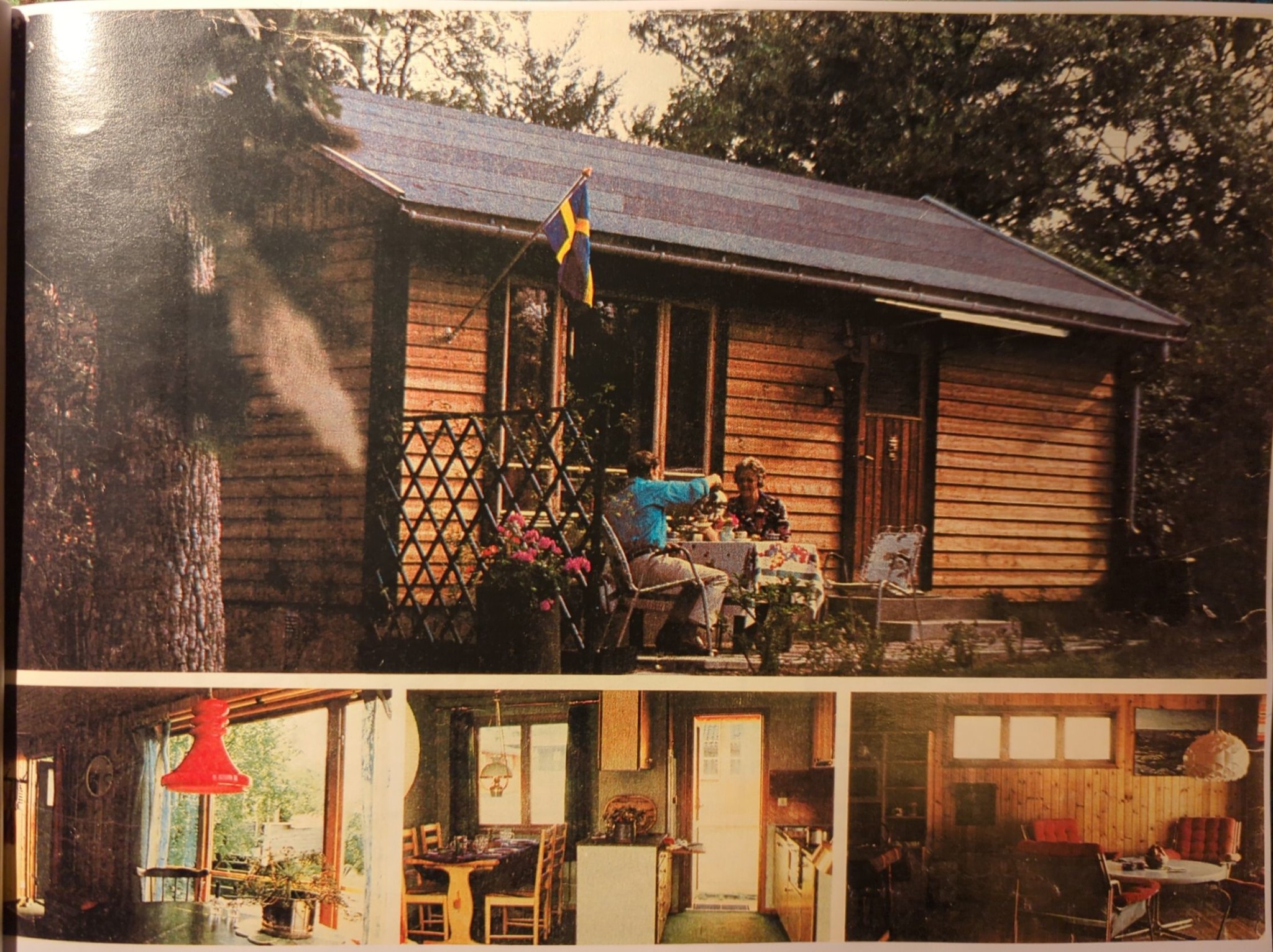 Någon som har en aning om hur ytterväggen på denna sommarstuga skulle kunna vara uppbyggd? Tjockleken är ca 14 cm allt som allt (inkl ytterpanel).