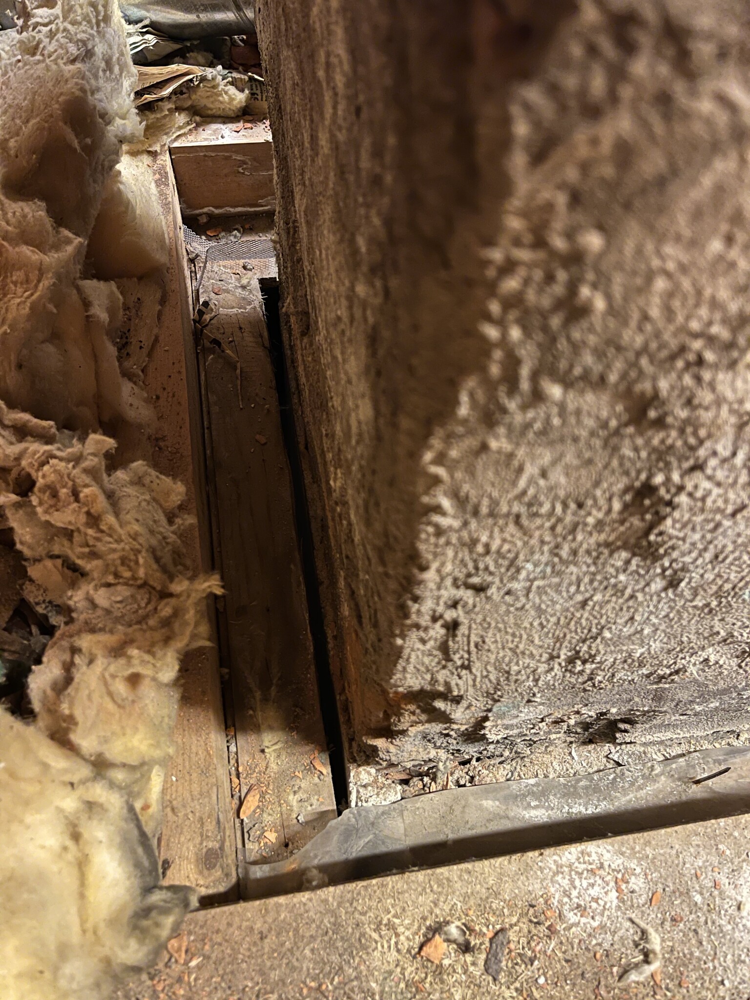 Problemet är att det finns en hel del springor och glipor mellan murstocken och innertaket vilket har varit en motorväg för möss som vill in i huset/köket via vinden.