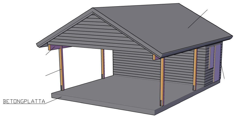 Bild på tänkt slutresultat (har inte bestämt mig om det ska vara en eller två stolpar i främre delen av carporten):