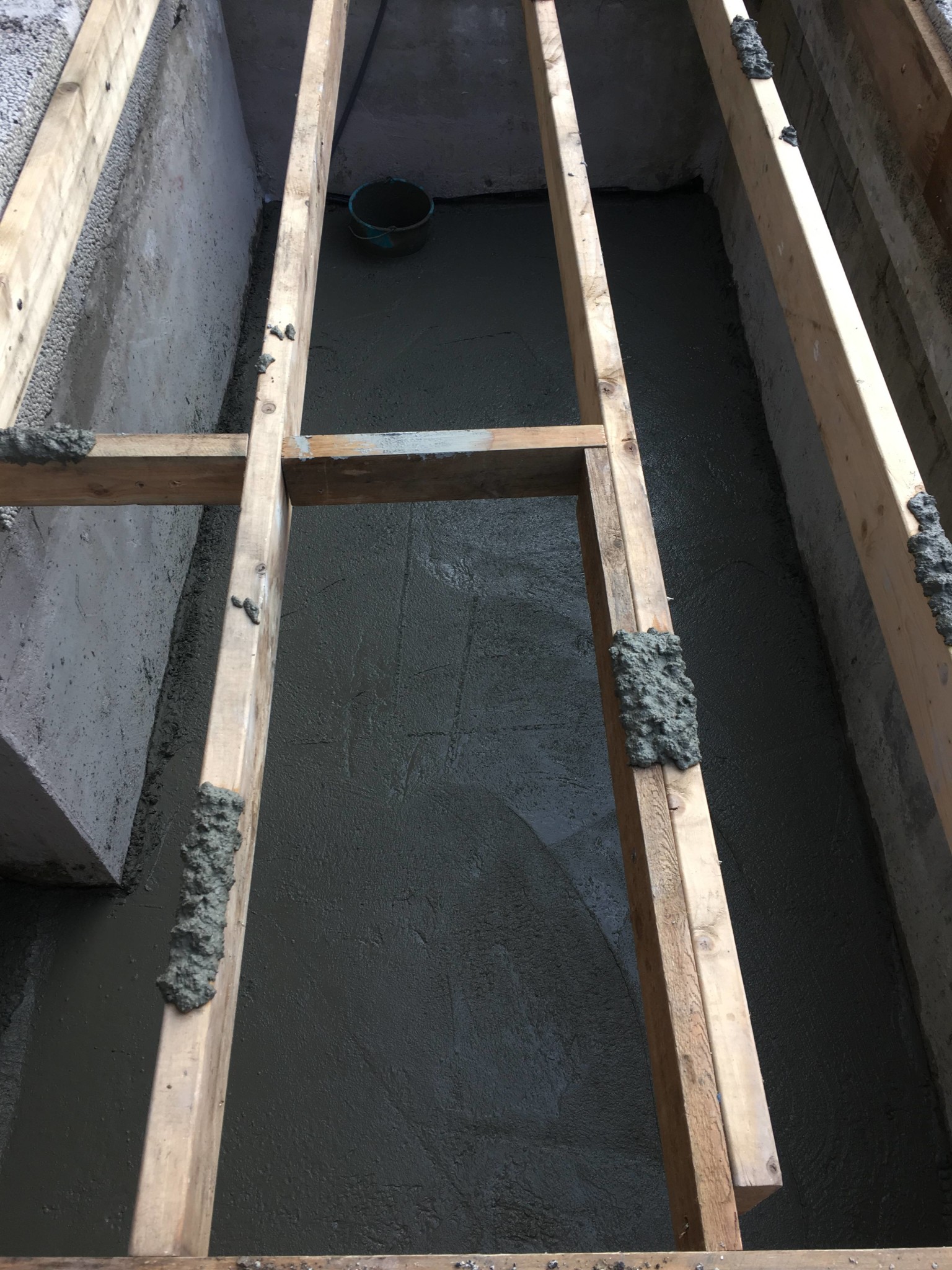Värt att notera är en kubik skulle ha gett en gjutning på 100mm. Men tydligen är det ganska oexakt mätning när de fyller bilen så det blev ca 140mm gjutning trots att jag travade bort med 4 skottkärror. Nu var detta inget problem men kan vara värt att veta om i fall tjockleken är viktig...