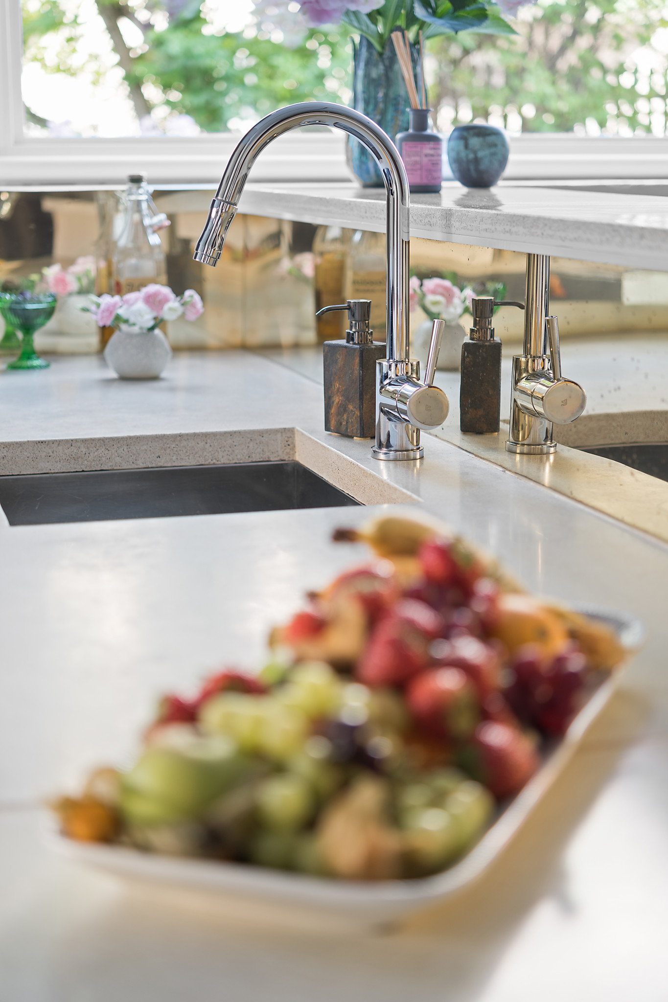 Gjuta "terazzo" skiva med inbyggda NFC-chip