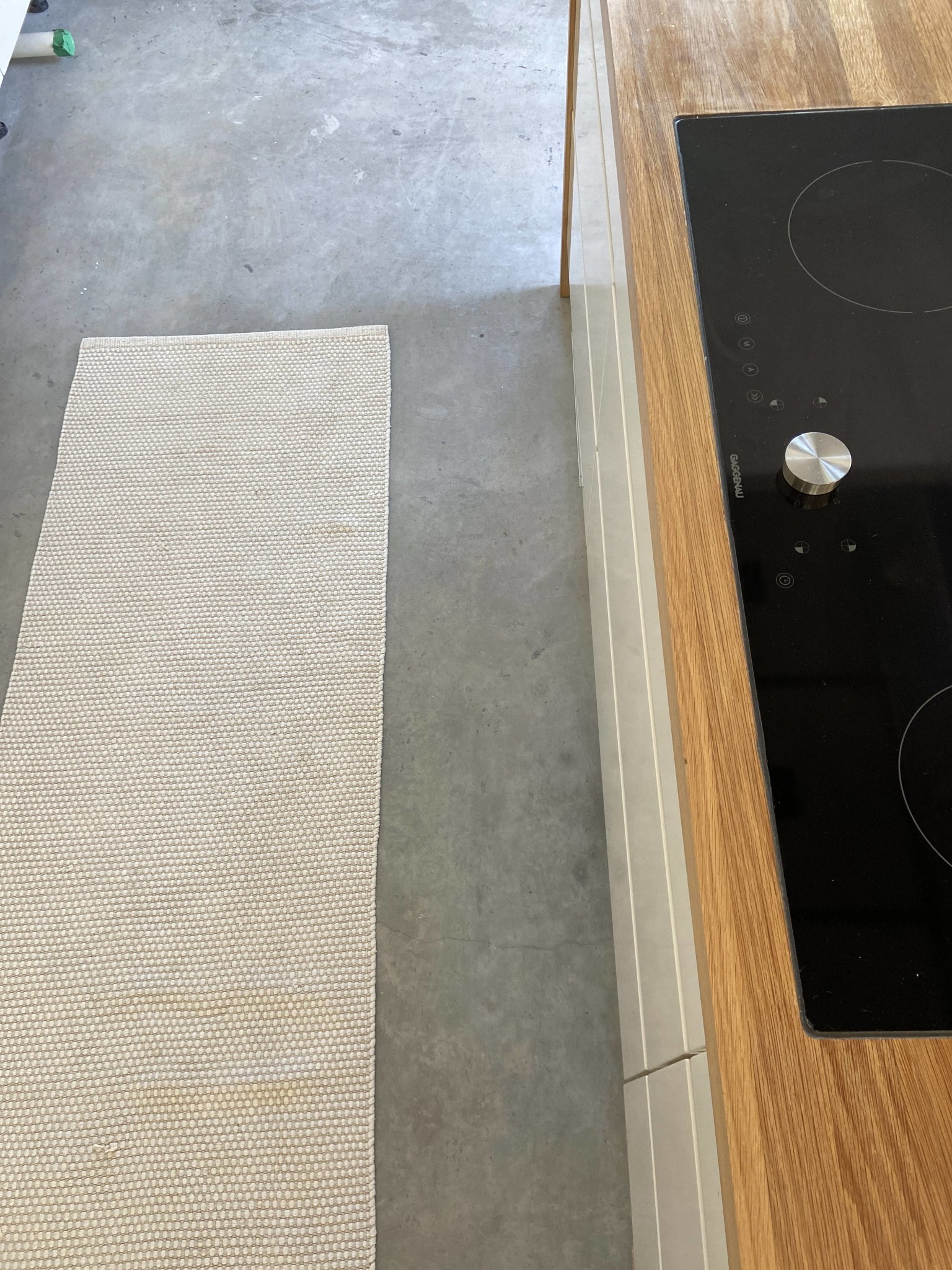 Visar bild nedanför spisen, det har inte blivit några fettfläckar från stekning som vi initialt var rädda för.
