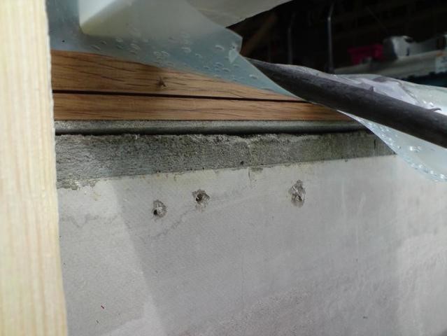 Jag funderar på om det är något snickaren har gjort för att få lite mer bärighet under syllen. Annars så brukar det itne vara långt ner till isoleringen på elementen, och därmed får man inte så mycket betong där.