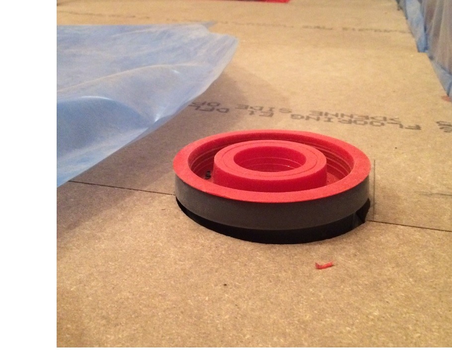 Sitter i liknande situation att skarven hamnar precis över kanten på spånskiva. Rör muff kanten över blir ungefär 2,2 cm.