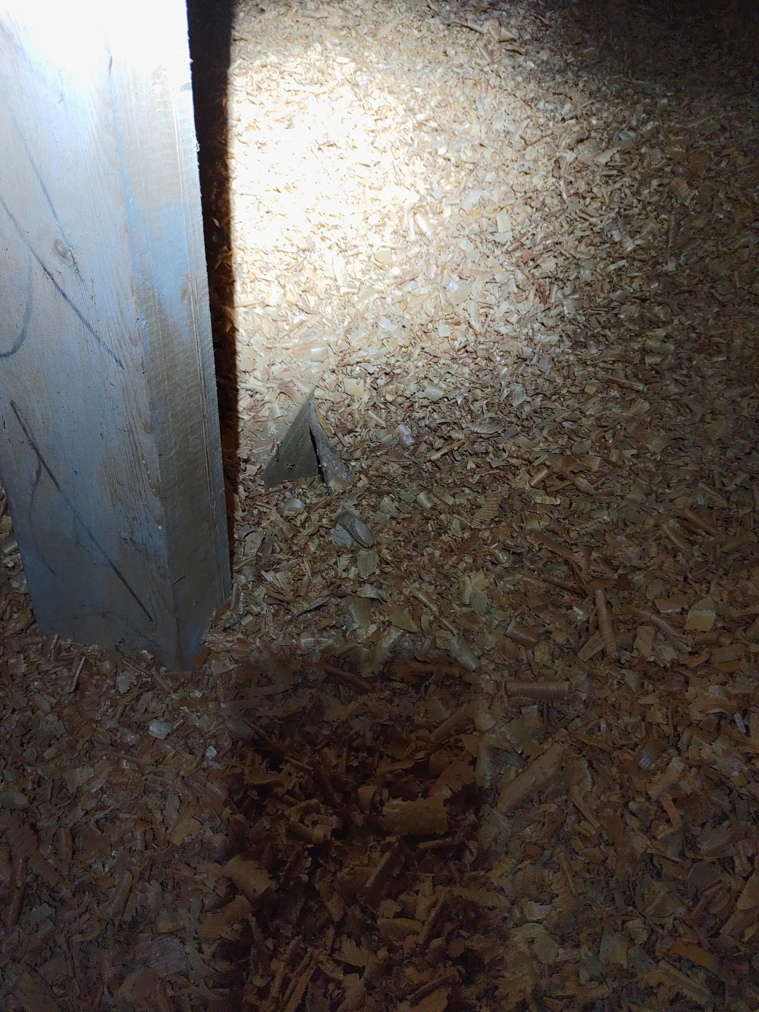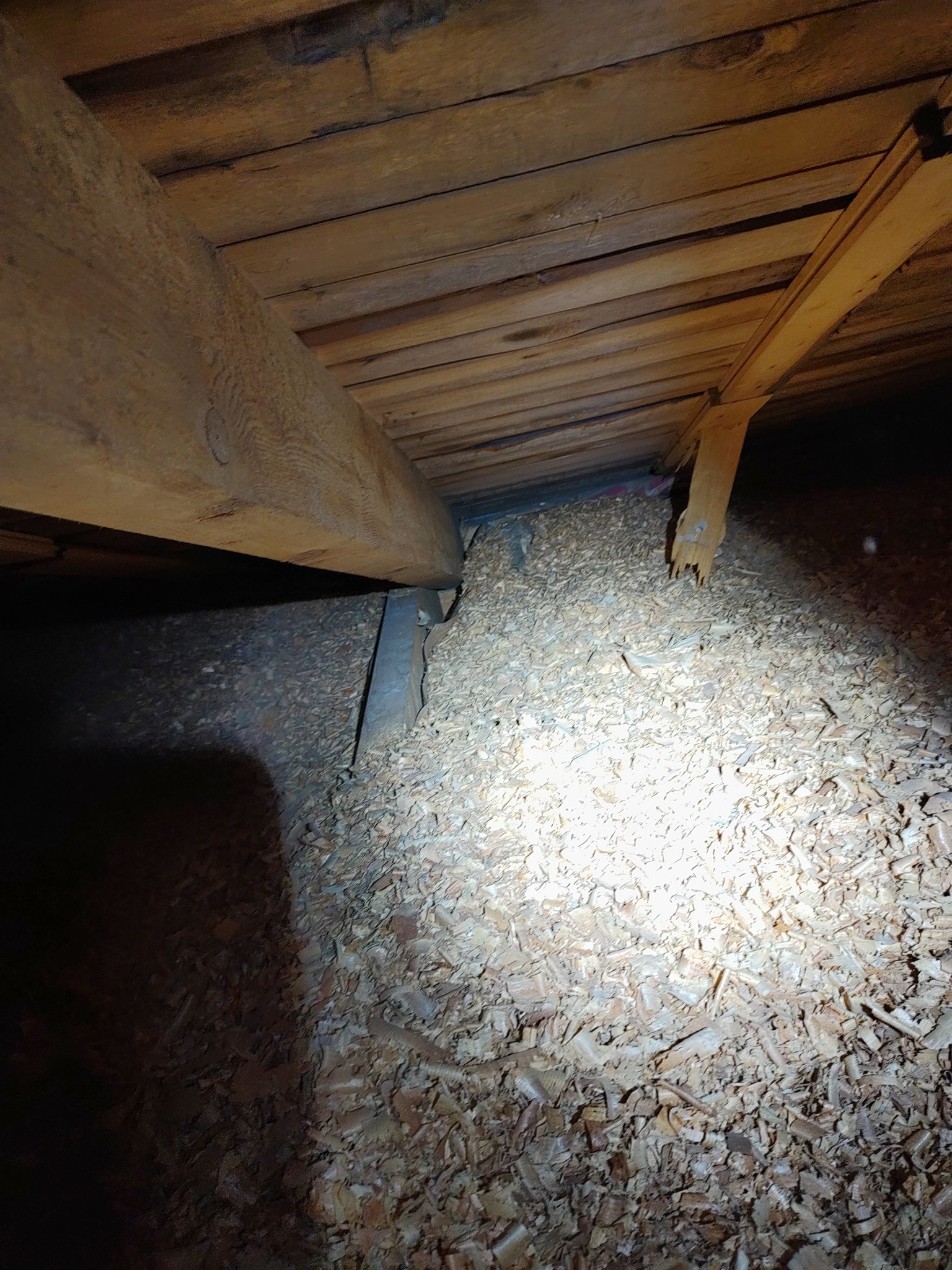 Flyttade in för ett år sen i en 40-talsvilla. Jag och sambon tog ett varv på vinden nyligen för att ta ned gamla getingbon. Lade märke till att kutterspånet som ligger verkar vara utlagt ovanpå vad som ser ut som någon sorts pappersliknande material.