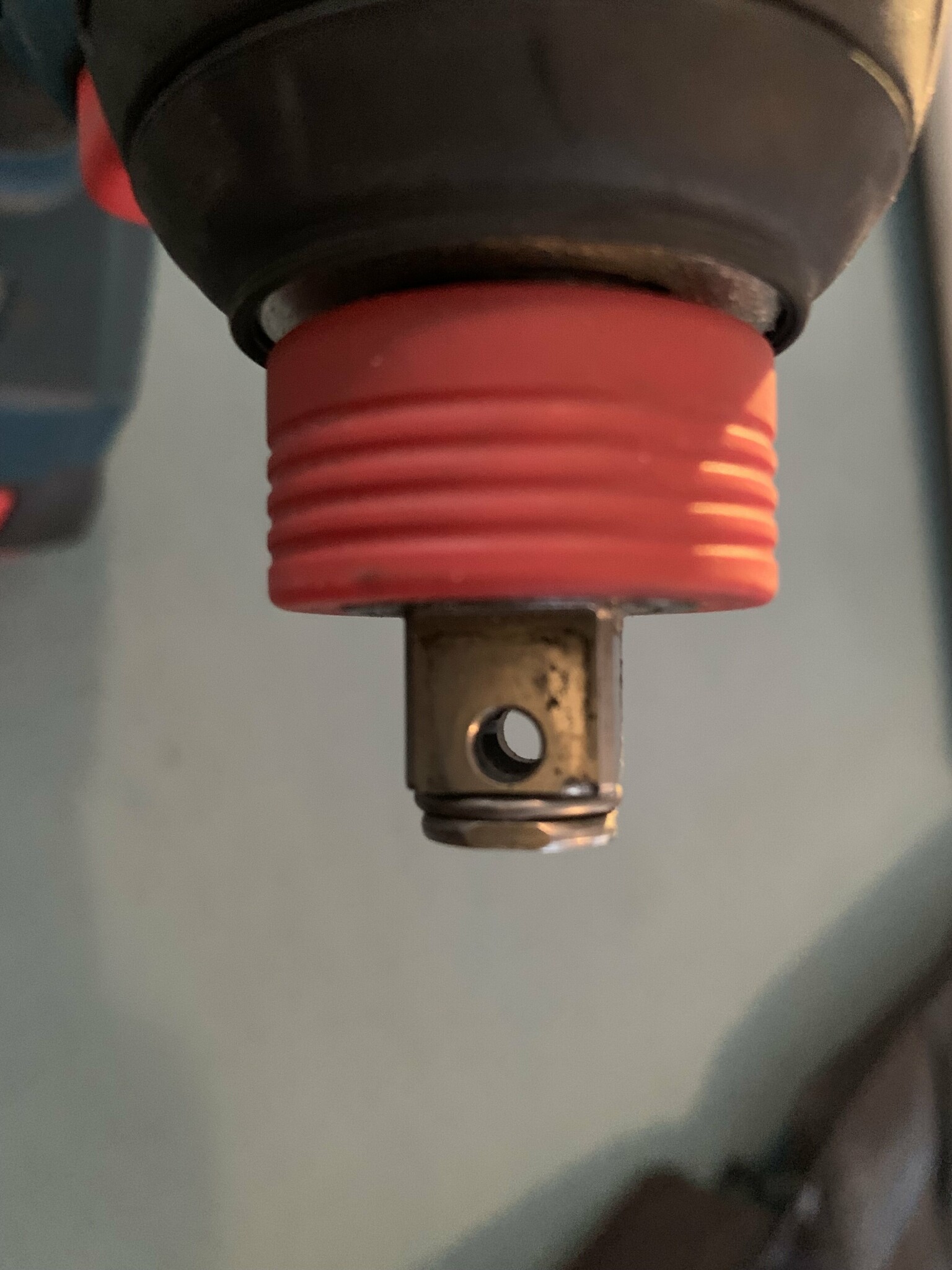 Jag har en GDX18V-200C från 2019 utan hål och en GDX18V-210C från 2023 med hål. Det är ingen skillnad på 1/2" grepp i krafthylsor på dessa. Men bosch fyrkantsmått är nog mot minmått från standarden. Jag har bitsadaptrar från Wera och Dewalt som trillar av maskinerna vid användning. Köpte sedan ett krafthylseset från Bosch som sitter fast hårt och helt glappfritt. Jag kör mycket skruv med TX40 och använder alltid en adapter istället för centrumbitshållaren ifall bitsen skulle gå av inne i nosen. När Du använder hylsor på spärrskaft sitter det väl normalt en fjädrad kula i den. Den bitsadapter som följde Bosch krafthylseset är något speciell men håller bitsen perfekt med spännring (inget snabbfäste eller magnet). DUAB hade bra pris på detta set.